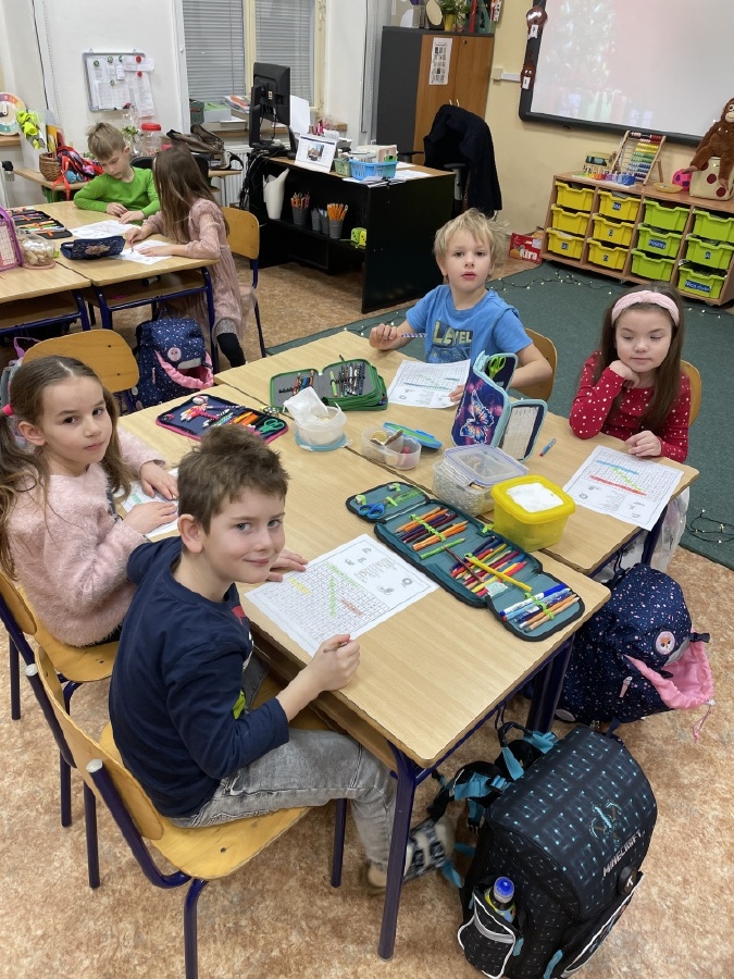 Advent v I. B byl plný zážitků, tvoření i nových znalostí. Navštívili jsme Hrádek, kde si děti vyrobily vánoční ozdobu a dozvěděly se, jak se slavily Vánoce dříve. Přišli k nám čerti s nadílkou a děti statečně plnily čertí úkoly. Vánoční povídání pro nás připravila kutnohorská knihovna. Kromě zábavy jsme se hodně naučili, známe malá tiskací písmena, počítáme do 7, tvoříme slovní úlohy a pracovali jsme s QR kódy. Poslední školní den jsme si pochutnali na cukroví, podívali se na pohádku, přivítali naše patrony a rozdali si dárky. Všem přejeme krásné Vánoce a do nového roku hlavně hodně zdraví! Mgr.Martina Výborná