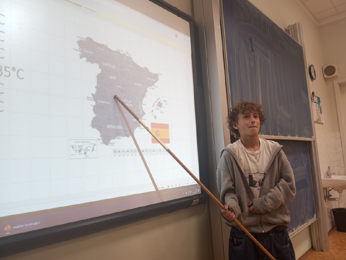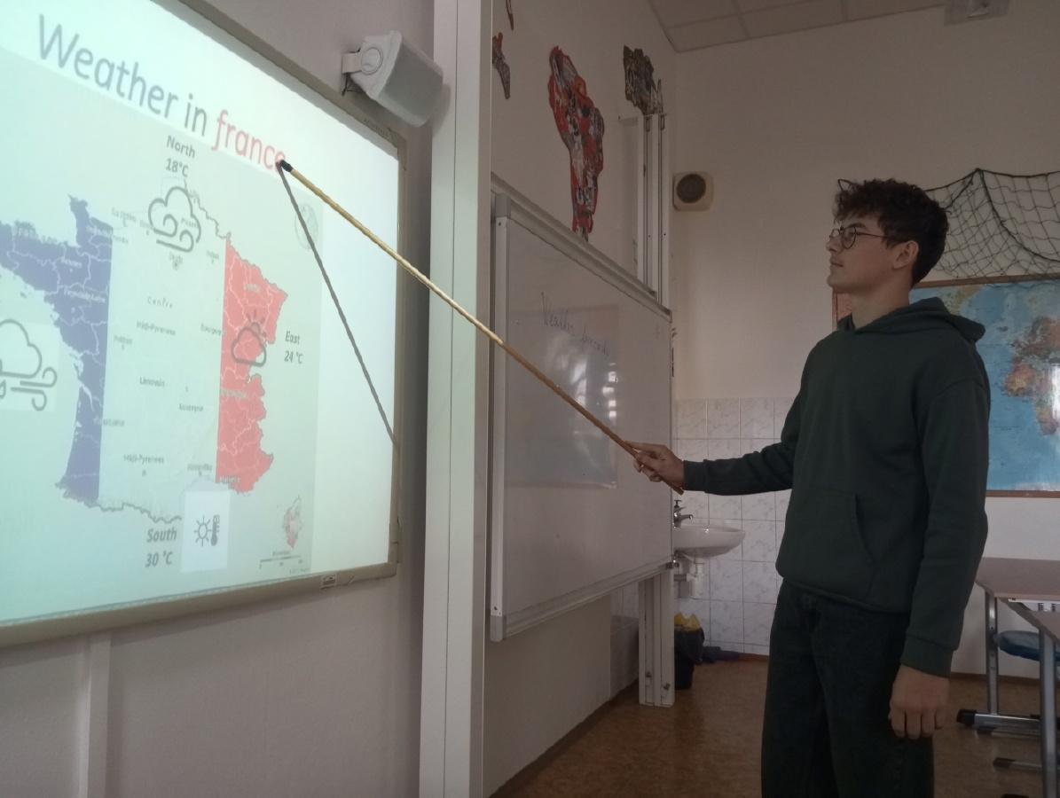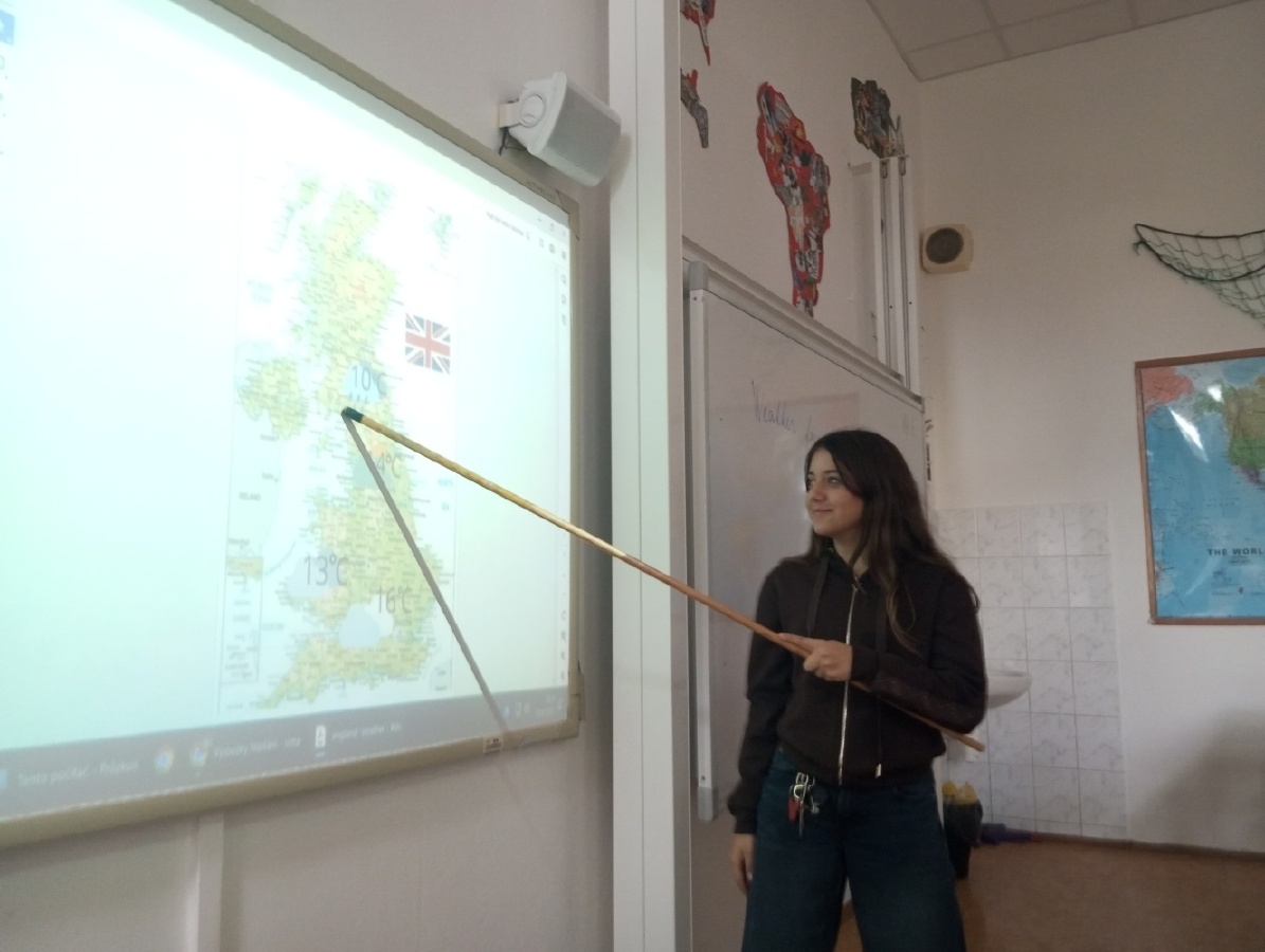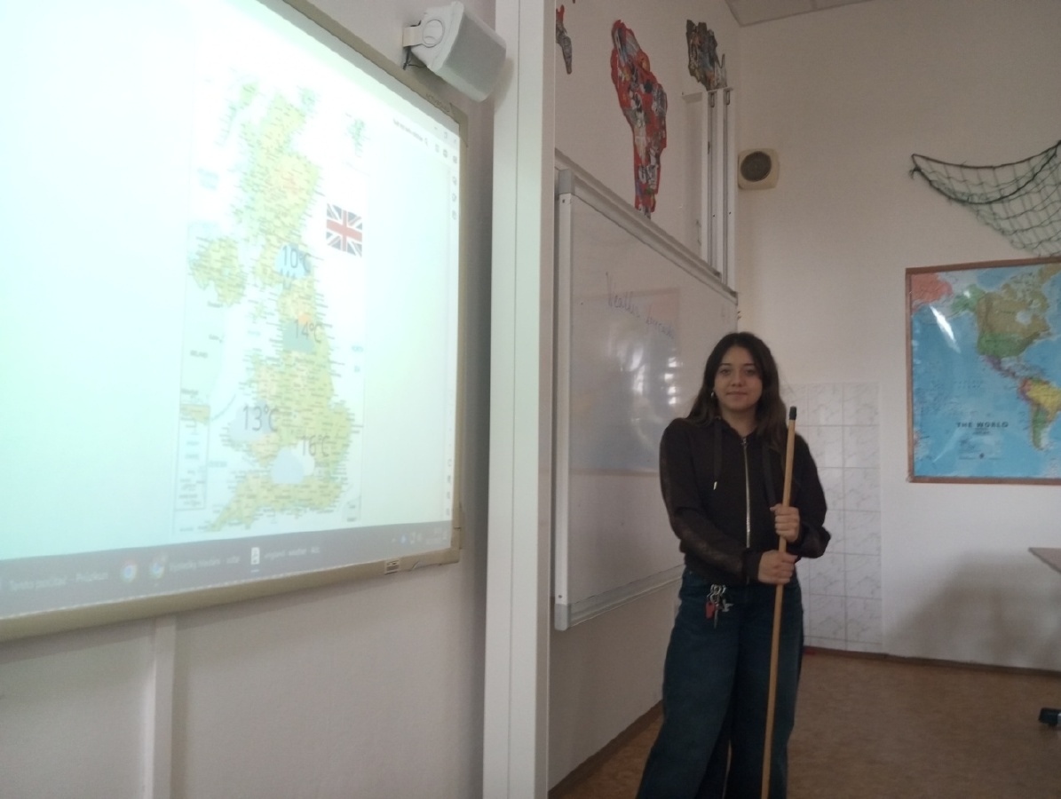 V hodinách angličtiny si žáci 8. tříd vyzkoušeli netradiční, ale zábavný výstup – stali se moderátory počasí. Připravili si vlastní předpověď počasí, sami si zvolili zemi i datum, ke kterému se jejich předpověď vztahovala, a za pomoci dříve probrané slovní zásoby si vytvořili krátký text, který poté prezentovali. Tato aktivita sloužila nejen k procvičení slovní zásoby na téma počasí, ale zároveň rozvíjela mluvní dovednosti, prezentační schopnosti a sebevědomí při vystupování před ostatními – to vše v angličtině. Někteří žáci pojali úkol velmi kreativně a připravili celé scénky, jiní naopak překonávali svou ostýchavost při mluvením před spolužáky. Podobné výzvy pomáhají žákům nejen rozvíjet jazyk ale i odvahu promluvit. Zároveň dělají výuku angličtiny pestřejší a přibližují ji skutečným situacím ze života. Mgr. Hana Votavová