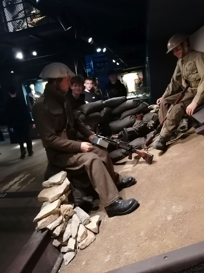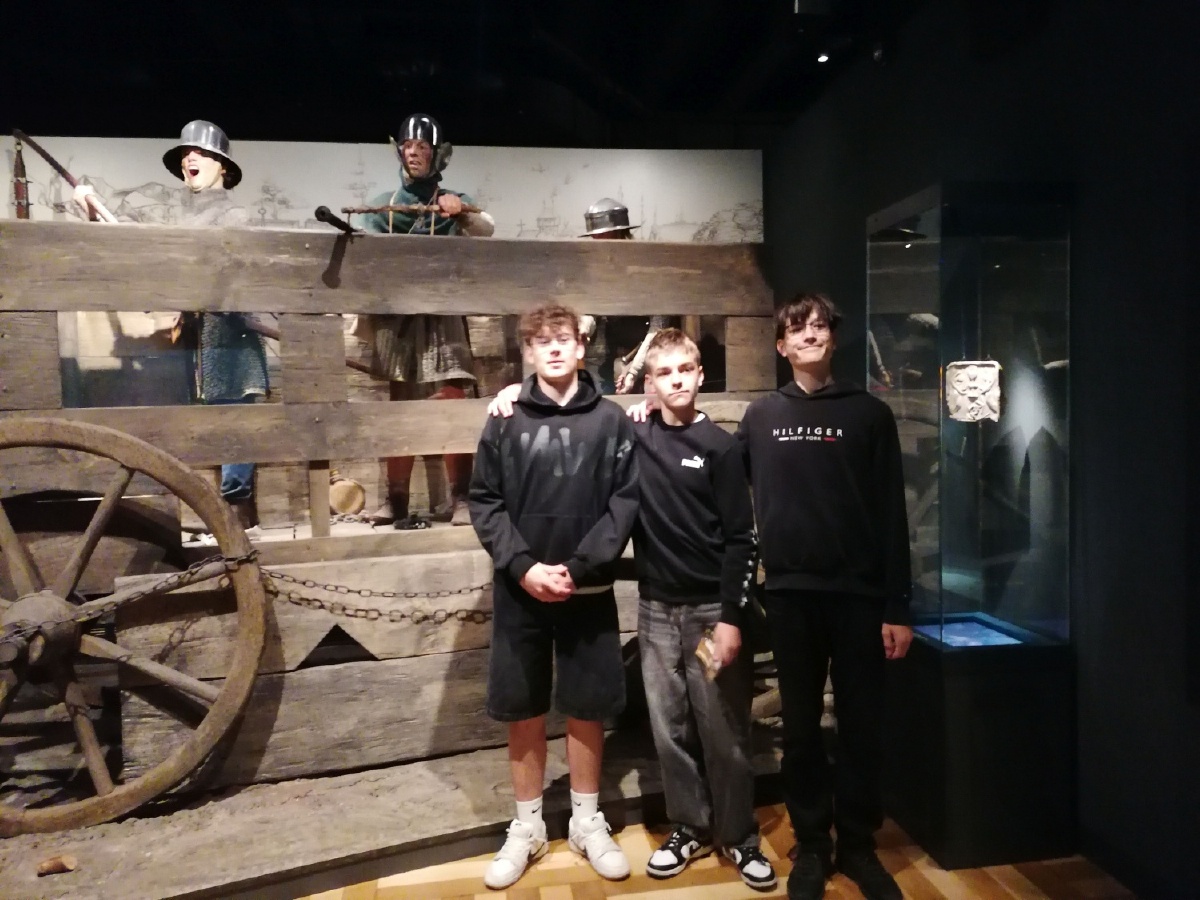 Ve čtvrtek 23. dubna navštívili žáci VIII. C Armádní muzeum v Praze. Na 5000m2, čtyřech patrech expozic, mapujících vývoj od středověku až po současnost, mohli osmáci vidět stovky autentických artefaktů, od uniforem rakousko-uherské armády, přes zbraně, až po osobní předměty vojáků, které doplňovaly jejich příběhy. Součástí exkurze byl i připravený výukový program s názvem Příběh Velké války. Jednotlivé týmy plnily úkoly v různých sálech a mohly tak zažít interaktivní prohlídku, například průchod zákopy, což byl pro všechny veliký zážitek. Osmáci si vyzkoušeli i práci badatele a své výsledky pak zprostředkovali ostatním spolužákům. Propojili tak školní učivo s reálnými historickými artefakty a detailněji se ponořili do vojenství a politiky historie let 1914- 1918. Z práce osmáků jsme měli radost, pochvalu si vysloužili i od lektorky. Mgr. Jana Samková, Mgr. Hana Ratajíková