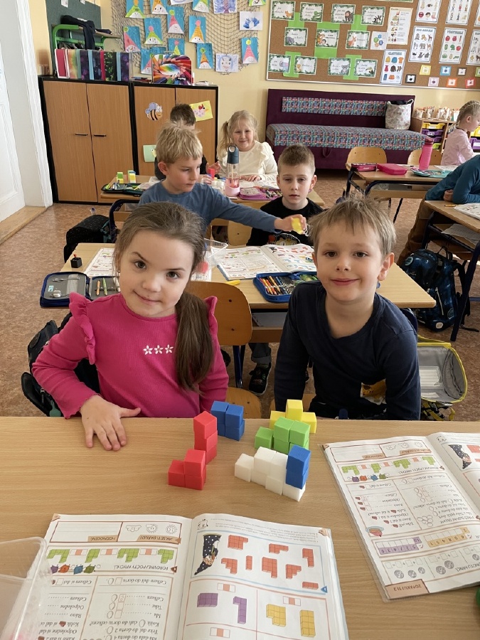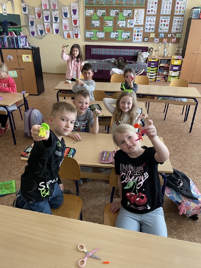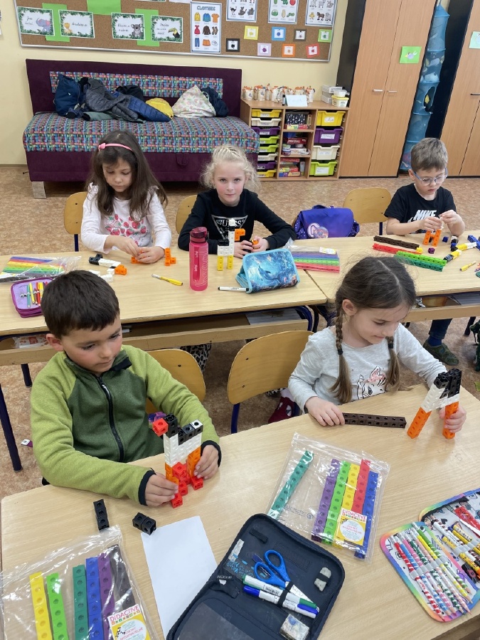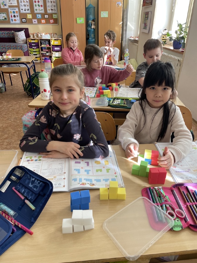 Program u prvňáčků v béčku byl i v měsíci březnu velmi pestrý. Děti stavěly stavby z kostek a každý si vytvořil svého čápa. Učili jsme se také venku, kde jsme poznávali jarní přírodu a květiny probouzející se po zimě. Při tělocviku si prvňáčci užili spoustu zábavy s trenéry, hráli jsme s míči, „vařili“ burgery a pizzu a zahráli si i hru na semafor. Začali jsme s programem Zipyho kamarádi, v jehož rámci si děti vytvořily vlastní strašilku z drátků. V angličtině se učíme základní fráze, barvy a zvířata. Navštívili jsme školní velikonoční jarmark a místo aktovek jsme si přinesli jiná, originální zavazadla. Čeká nás ještě spousta akcí, na které se těšíme, a přejeme všem krásné a pohodové Velikonoce. Mgr. Martina Výborná