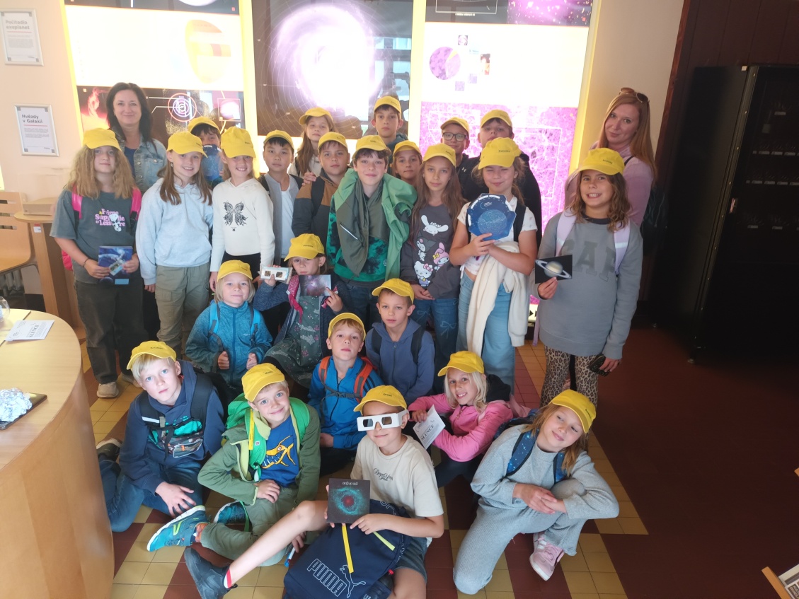 Děti ze 4. ročníku navštívily Planetárium v Hradci Králové, kde se zúčastnily programu zaměřeného na Slunce, Zemi, planety a jejich měsíce, střídání dne a noci, roční období a další fascinující astronomické jevy. V rámci programu žáci získali základní znalosti o pozorování oblohy a virtuálně se podívali na Sluneční soustavu. Dále si prohlédli dalekohledy a při příznivém počasí pozorovali Slunce a sluneční skvrny. Pořad byl součástí výuky přírodovědy, konkrétně vzdělávací oblasti Člověk a jeho svět. Děti se tak seznámily s tématy, které souvisejí s jejich učivem o vesmíru a přírodních jevech.