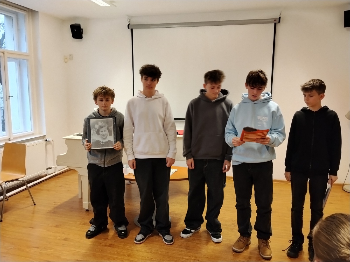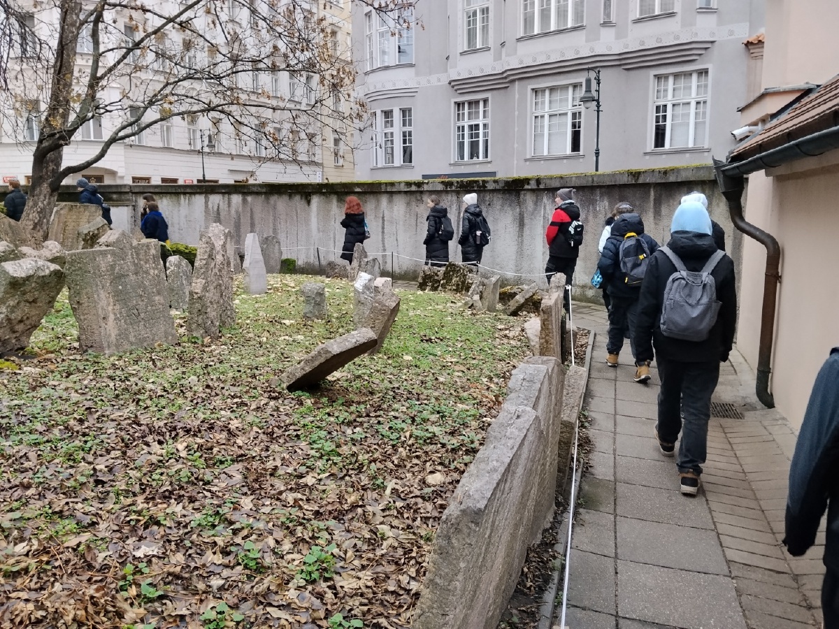 Ve čtvrtek 4. prosince navštívili žáci IX. A a IX. C v rámci hodin dějepisu Židovské město v Praze. Nejprve absolvovali ve vzdělávacím centru program s názvem Hanin kufřík, během něhož se seznámili s osudy konkrétních rodin z Protektorátu Čechy a Morava za 2. světové války. Součástí programu byla i prohlídka Staronové a Pinkasovy synagogy a Starého židovského hřbitova z 15. století. Životní osud židovské dívky Hany Bradyové nenechal chladným žádného z deváťáků, kteří si tak mohli ještě více uvědomit hrůzu holokaustu, války a na základě skutečného příběhu i křehkost a pomíjivost lidského života. Mgr. Jana Samková