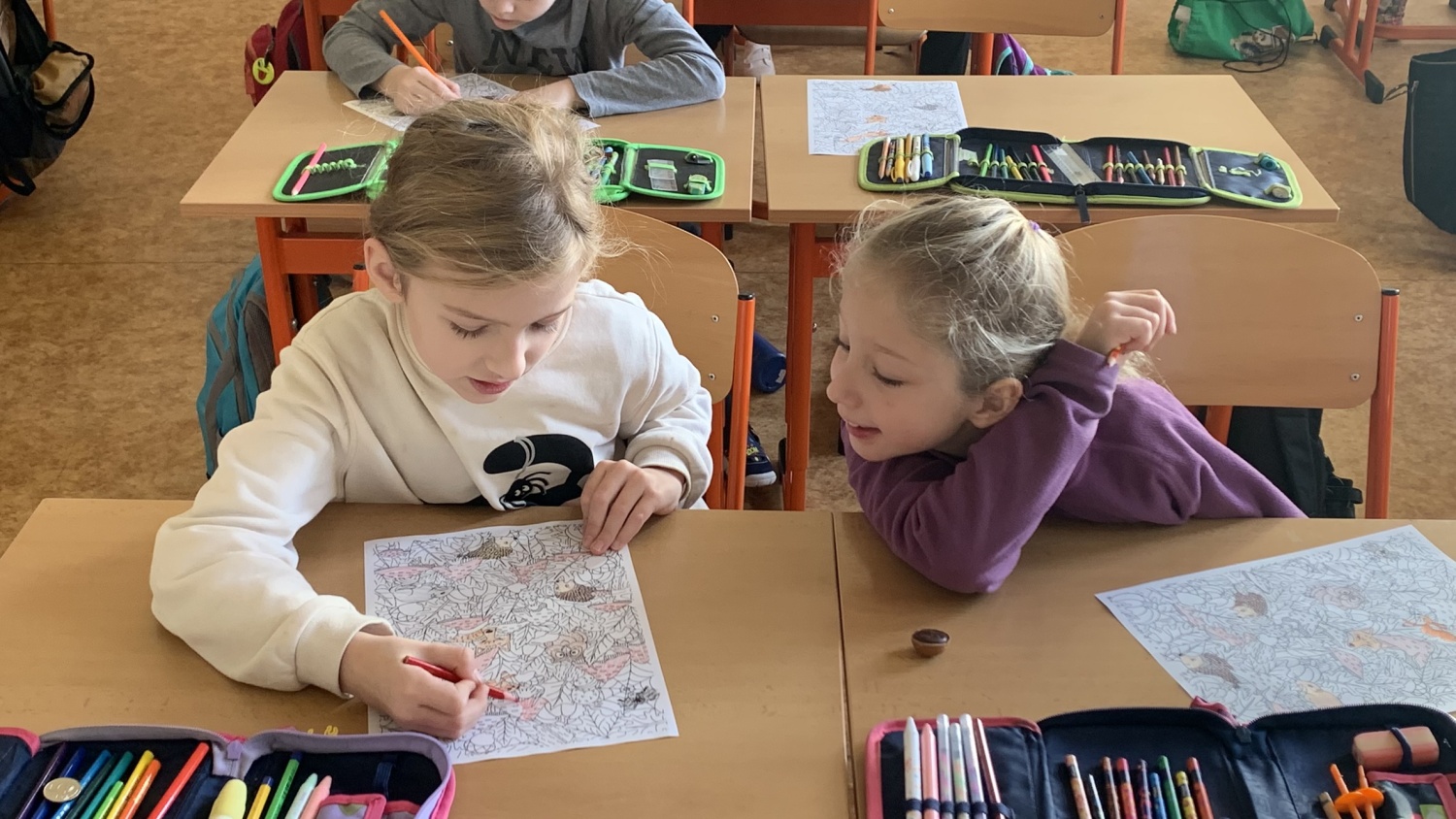 Druháčci z céčka se během projektu Učení a kouzla v podzimní přírodě věnovali nejrůznějším podzimním kouzlům. Zjišťovali, proč listy na podzim opadávají a mění barvu, k čemu pak spadané listí slouží, proč stromům není bez listů zima...? Své bádání zpestřili pohybovými hrami a na závěr děti ve dvojicích či skupinách vytvořily obrazce ze všemožných přírodnin. Velkým plusem bylo i sluníčko, které děti venku hezky ohřálo. Mgr. Jaroslava Šibravová