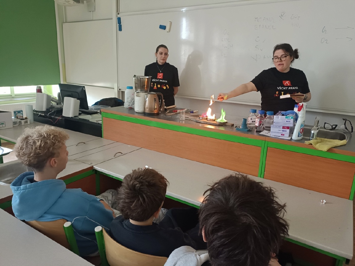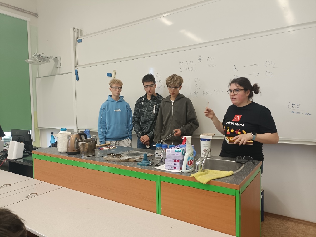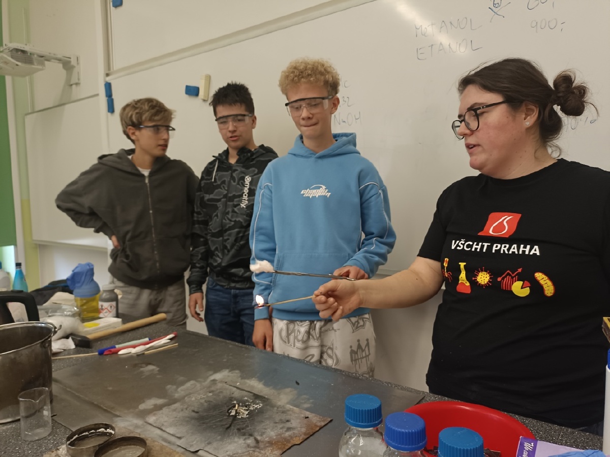 Ve čtvrtek 27. listopadu proběhly u nejstarších studentů hodiny moderní chemie a forenzní vědy. Osmákům a deváťákům přinesly pořádnou dávku objevování a experimentů. Osmáci si vyzkoušeli efektní pokusy se suchým a kapalným dusíkem, se střelným prachem a porovnali hořlavost celulózy a nitrocelulózy. Deváťáci se naopak ponořili do světa forenzní analýzy – naučili se roli operativce a vyšetřovatele, vyvrátili mýty z detektivních seriálů a prakticky si vyzkoušeli odebírání otisků prstů. Hodiny byly plná překvapení a inspirace pro mladé chemiky a detektivy. Ing. Šárka Nováková