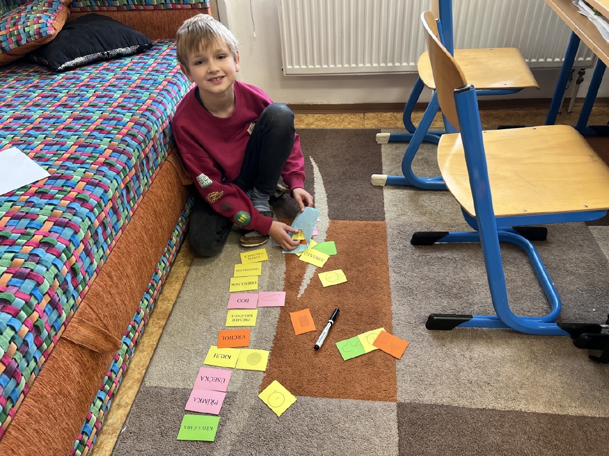 Ve čtvrtek 13. listopadu hodina matematiky ve IV. C proběhla ve znamení zábavy, soutěžení, a hlavně hravého učení. Místo klasických sešitů a tabulek se třída proměnila v hrací arénu, kde si žáci ověřili své matematické dovednosti netradičním způsobem. Co jsme trénovali? Násobilku jsme si pomocí desetistěnných kostek procvičili dokonale, a ještě bojovali o získané území. Geometrii jsme si zopakovali pomocí přiřazování kartiček a hlava nám jela na plné obrátky při řešení obrázkových rovnic a logických hlavolamů, které vyžadovaly nejen rychlou mysl, ale i strategické myšlení a spolupráci. Pořadí početních operací s přirozenými čísly jsme si propojili s geometrií. Kdo chtěl věnoval se počítání s velkými čísly. Cílem hodiny bylo ukázat, že matematika není jen o drilování. Vidět, jak jsou děti nadšené a motivované, je pak nejlepší zpětná vazba. Mgr. Irena Skaláková