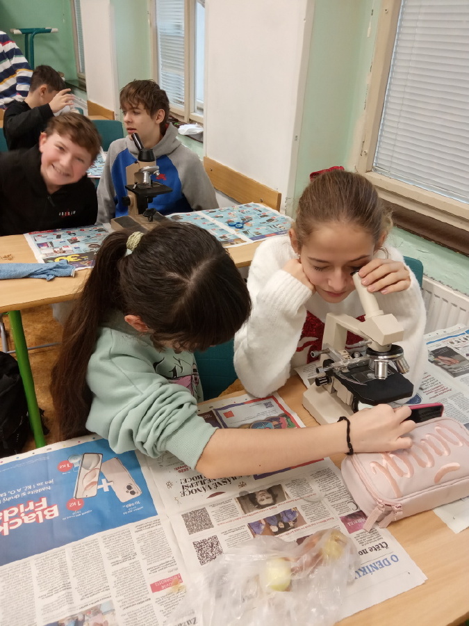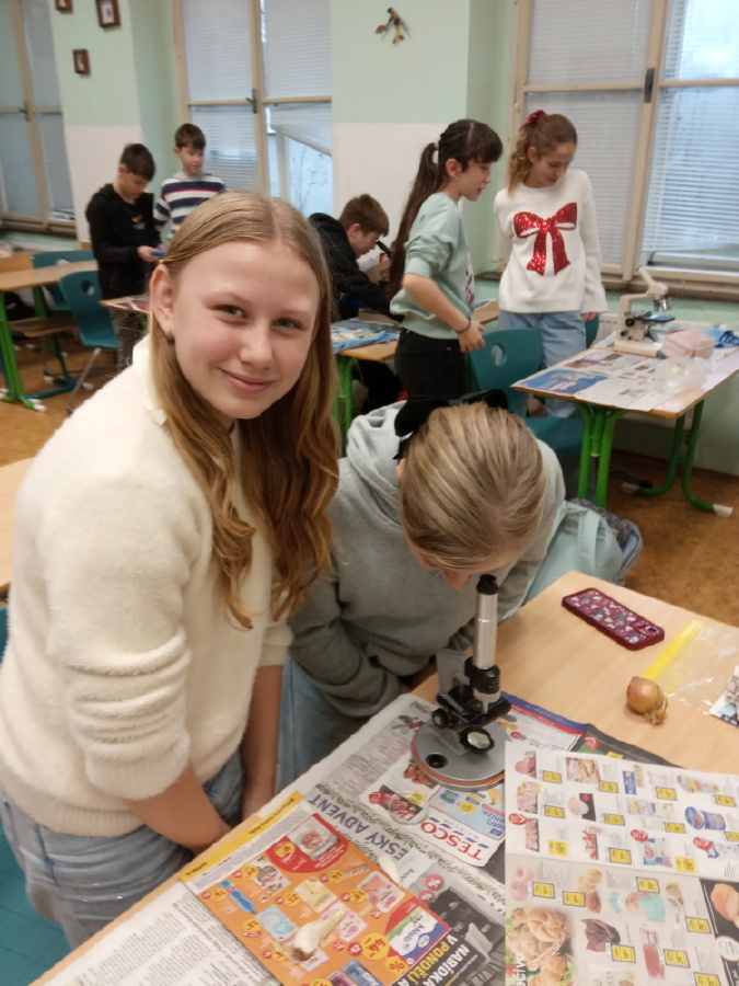 Poslední prosincový týden se žáci VI. B a VI. C pustili do mikroskopování. Jako vzorek posloužila cibule, z které děti udělaly mikroskopický preparát. Všem skupinám se vzorek povedl udělat a dokonce přežila i všechna sklíčka. Mgr. Jana Kořínková