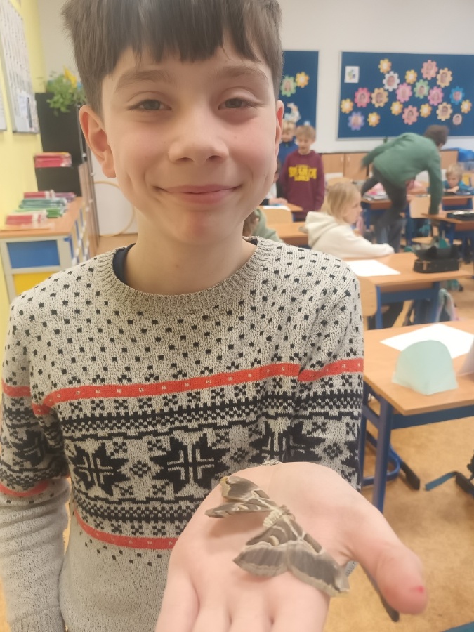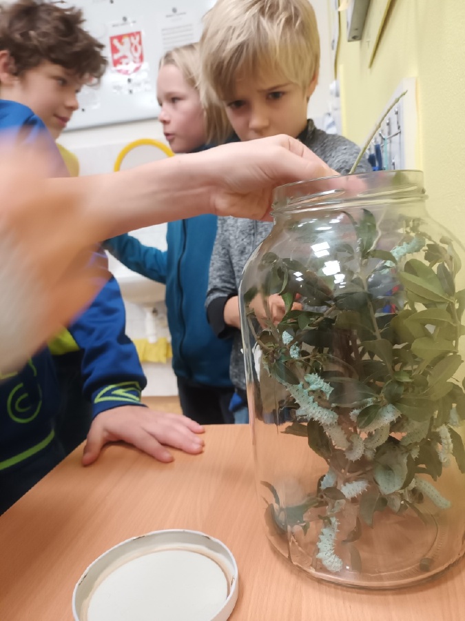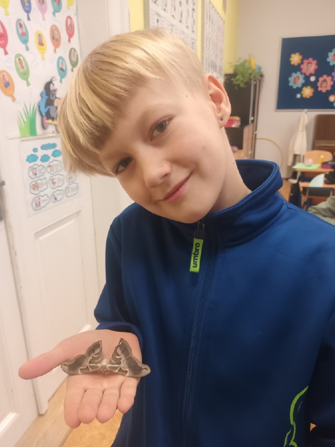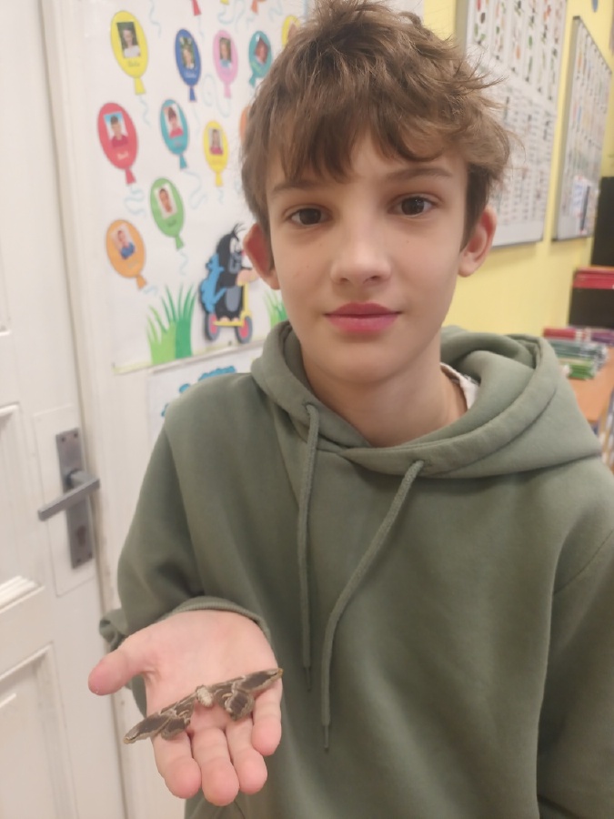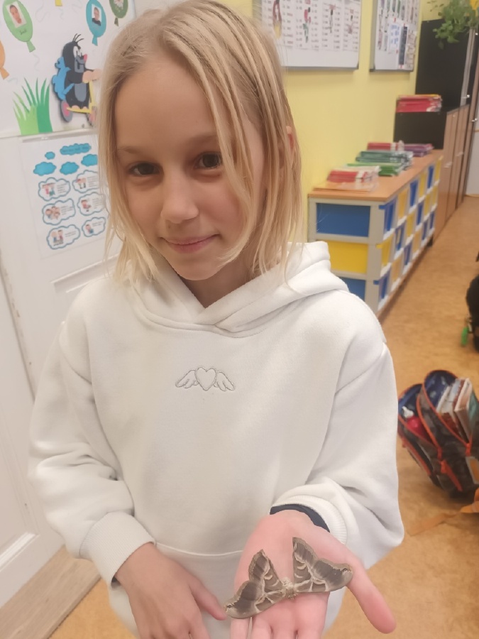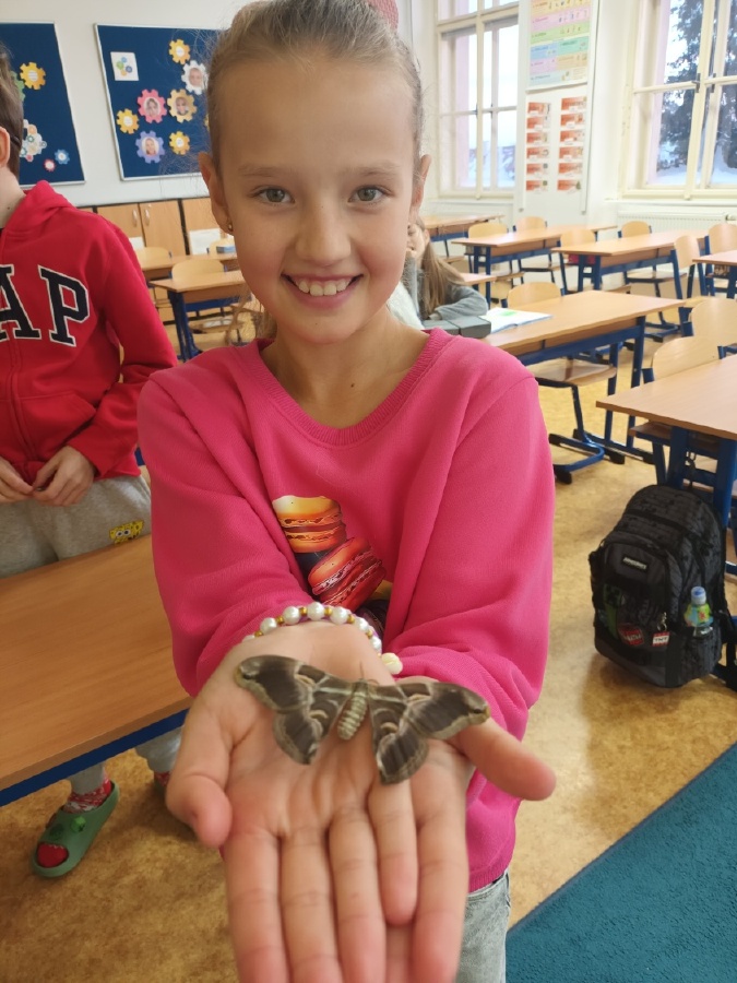 „Dobrý den, paní učitelko, chtěla byste housenky?“ Takovou neobvyklou, ale velmi lákavou nabídku obdržela třídní učitelka IV. B. Jedna z maminek totiž nabídla třídě housenky martináče pajasanového, aby děti mohly na vlastní oči sledovat jednotlivá stádia vývoje tohoto krásného motýla. Spolu s housenkami dostala třída také větvičky s listy, kterými se housenky vydatně živily, a návod k jejich péči. Čtvrťáci se o své nové „spolužáky“ vzorně starali – pravidelně jim rosili dočasný domov, velkou sklenici, a nezapomínali ani na úklid. Brzy přišel další napínavý okamžik: první housenka se zakuklila. Děti kuklu opatrně zavěsily na šňůru pomocí kolíčku a netrpělivě čekaly na další. Během několika dnů se dočkaly – na šňůře nakonec viselo čtrnáct kukel. Poté následovalo několik týdnů očekávání, až se z kukel vylíhnou motýli. A čekání stálo za to! Čtvrťáci si mohli prohlédnout i vyfotografovat nádherné martináče. Samičky dokonce nakladly vajíčka – a kdyby je samečci oplodnili, mohl by celý příběh s housenkami začít znovu. Mgr. Markéta Štifterová