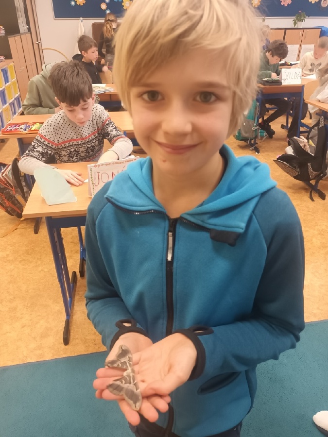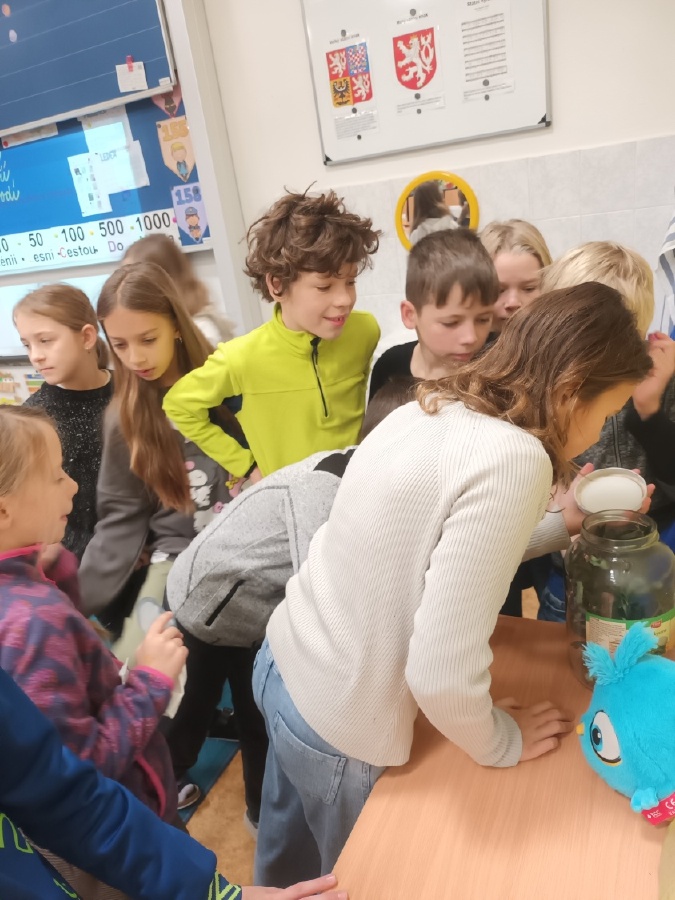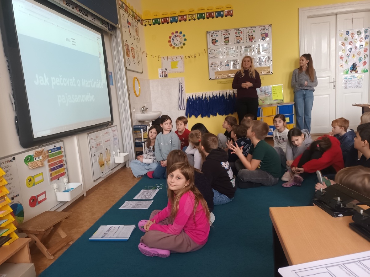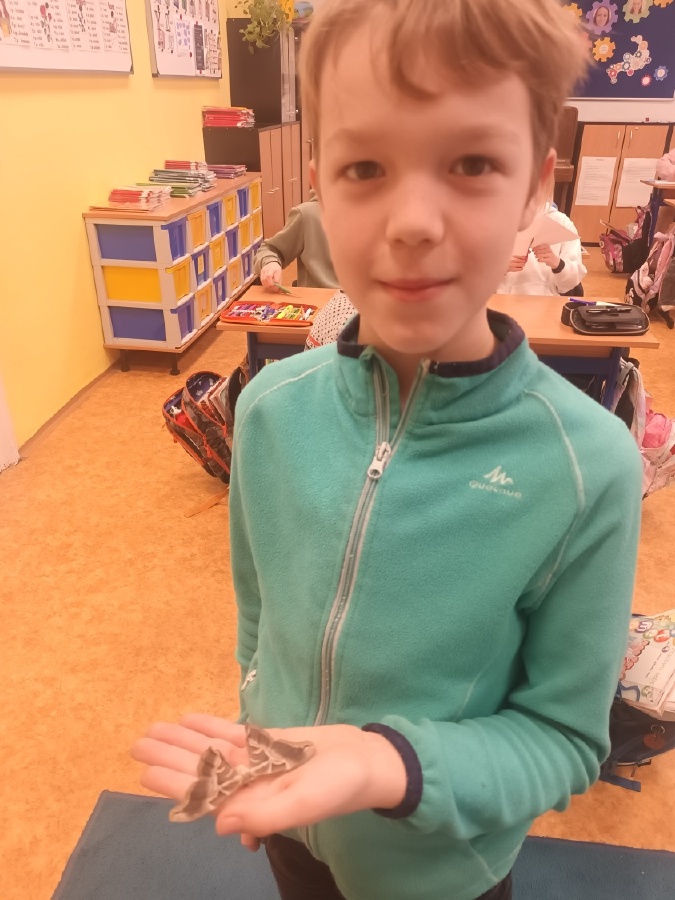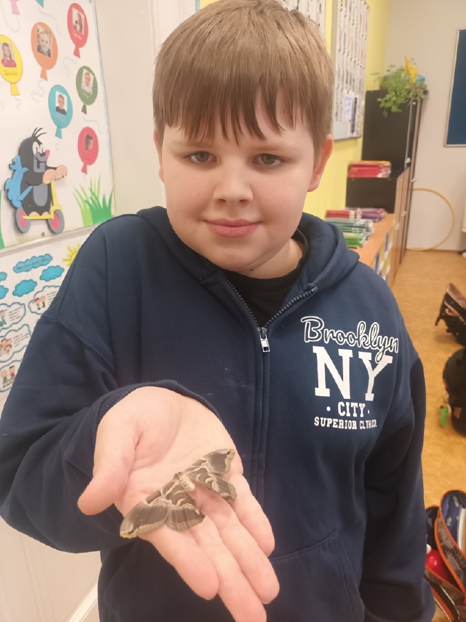 „Dobrý den, paní učitelko, chtěla byste housenky?“ Takovou neobvyklou, ale velmi lákavou nabídku obdržela třídní učitelka IV. B. Jedna z maminek totiž nabídla třídě housenky martináče pajasanového, aby děti mohly na vlastní oči sledovat jednotlivá stádia vývoje tohoto krásného motýla. Spolu s housenkami dostala třída také větvičky s listy, kterými se housenky vydatně živily, a návod k jejich péči. Čtvrťáci se o své nové „spolužáky“ vzorně starali – pravidelně jim rosili dočasný domov, velkou sklenici, a nezapomínali ani na úklid. Brzy přišel další napínavý okamžik: první housenka se zakuklila. Děti kuklu opatrně zavěsily na šňůru pomocí kolíčku a netrpělivě čekaly na další. Během několika dnů se dočkaly – na šňůře nakonec viselo čtrnáct kukel. Poté následovalo několik týdnů očekávání, až se z kukel vylíhnou motýli. A čekání stálo za to! Čtvrťáci si mohli prohlédnout i vyfotografovat nádherné martináče. Samičky dokonce nakladly vajíčka – a kdyby je samečci oplodnili, mohl by celý příběh s housenkami začít znovu. Mgr. Markéta Štifterová