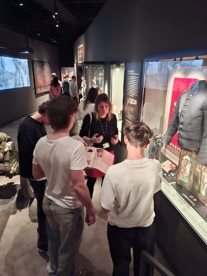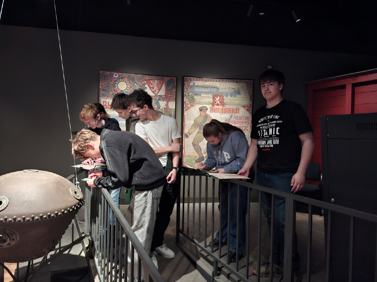 Žáci VIII. B absolvovali program Příběh Velké války. Během skupinové práce s dobovými dokumenty a exponáty z let 1914–1918 nahlédli na průběh první světové války z různých perspektiv – od legionářů a vojáků rakousko-uherské armády až po běžné obyvatele. Zkoumali, jak válečný konflikt ovlivnil osudy lidí, a pochopili význam odboje pro vznik Československa i vliv nových technologií na způsob vedení boje. Mgr. Kristýna Hurychová, Mgr. Kateřina Vyčichlová, Mgr. Šárka Dáňová