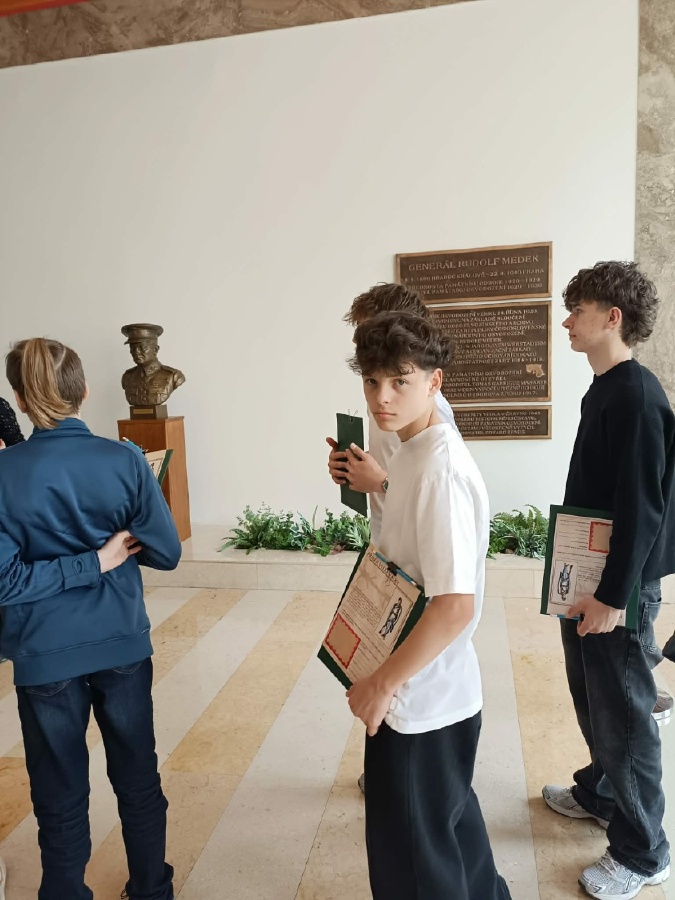 Naši osmáci v úterý 14. dubna absolvovali vzdělávací exkurzi v prostorách Armádního muzea na pražském Žižkově, kde se prostřednictvím interaktivních programů ponořili do zlomových momentů našich moderních dějin. Žáci VIII. A navštívili program s názvem První republika. Pomocí pracovních listů a expozice poznali okolnosti vzniku první republiky a její fungování až do roku 1938, a to především z vojenského hlediska. Dozvěděli se, jak se formovala československá armáda, jak to bylo se zbrojním průmyslem. Nedílnou součástí byla i část expozice, která se věnovala přímo struktuře, činnosti a úkolům československé. armády a státním symbolům.