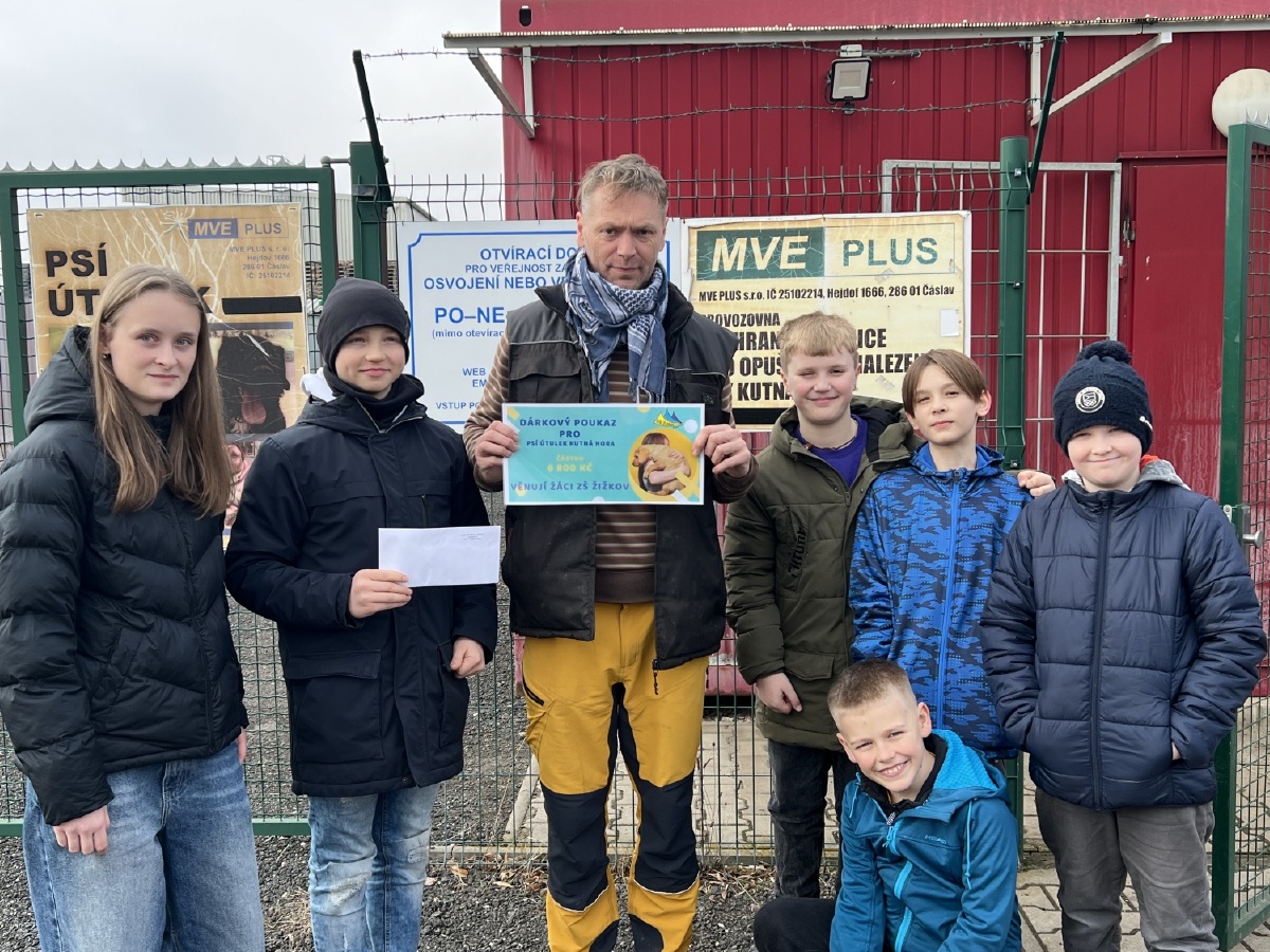 V úterý 3. března se skupina parlamentářů vydala do psího útulku v Kutné Hoře, aby předala finanční dar ve výši 6 800 Kč. O tom, že pomůžeme právě tady, rozhodl školní parlament v hlasování. Pan Pallendal nás při této příležitosti provedl zařízením, u každého svěřence nám přiblížil jeho osud - jak se stalo, že skončil právě tady. Prohlédli jsme si i ranč, to nás moc bavilo, protože jsme mohli zvířata pohladit i jim dát na zoubek mrkev. Návštěva byla moc fajn, všichni máme rádi zvířata a tak jsme si půlhodinku tady užili. Škoda jen, že nikdo nemáme takové podmínky, abychom mohli některému ze zdejších pejsků poskytnout nový domov. Ale na vlastní oči jsme viděli, že je tu o ně vzorně postaráno - za to určitě patří velký dík všem, kteří se o ně starají.