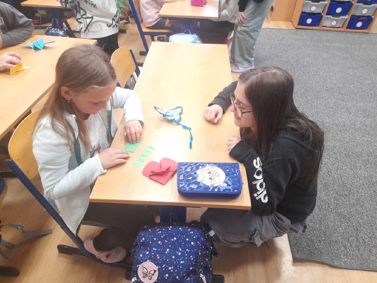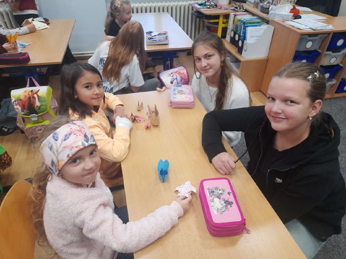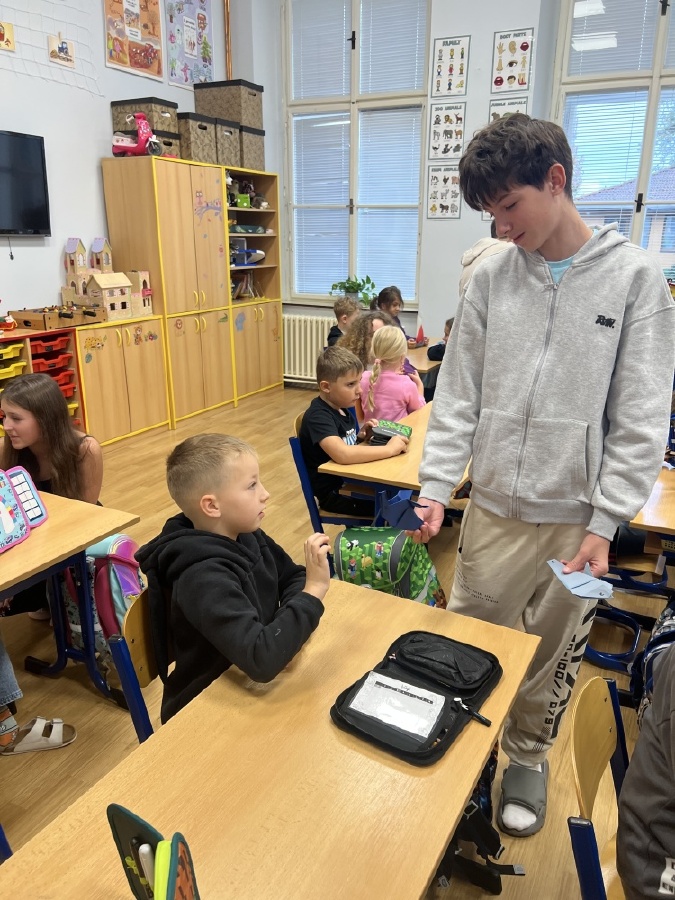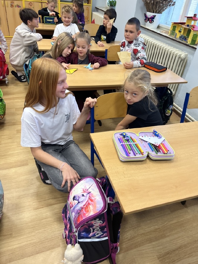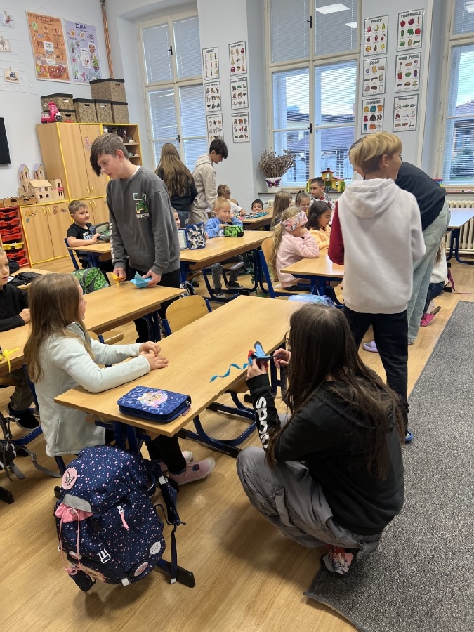 V pondělí 6.října proběhla seznamovací schůzka prvňáčků z céka s jejich patrony ze sedmičky. Setkání to bylo velmi milé a přes úvodní nervozitu si každý našel svého kamaráda. Sedmáci si připravili pro prvňáčky pěkné osobní dárečky v podobě origami. Všichni si společný čas užili, více se poznali a domluvili se, že se zase brzy uvidí. Bc. Lucie Kubínová, Ing. Šárka Nováková