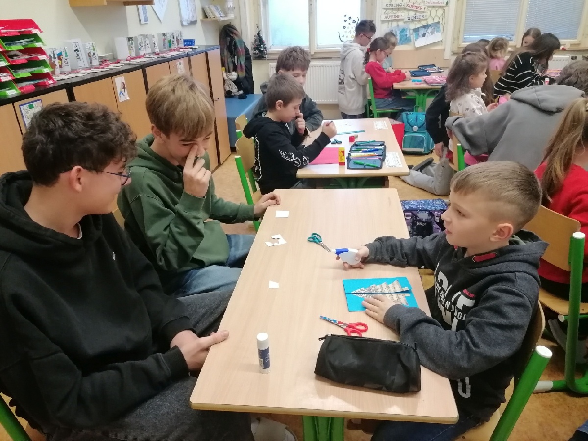V předvánočním čase proběhlo milé setkání žáků VIII. C s jejich druháčky. Společně si užili poklidnou hodinu plnou vánoční nálady, během které byl prostor na povídání i společné tvoření. Děti vyrobily vánoční přáníčka určená rodičům a vzájemně si zpříjemnily adventní čas. Všichni se již nyní těší na další setkání, které se uskuteční už v novém kalendářním roce. Mgr. Hana Ratajíková