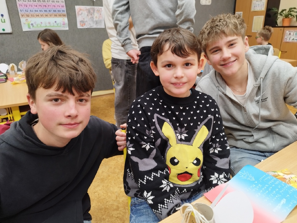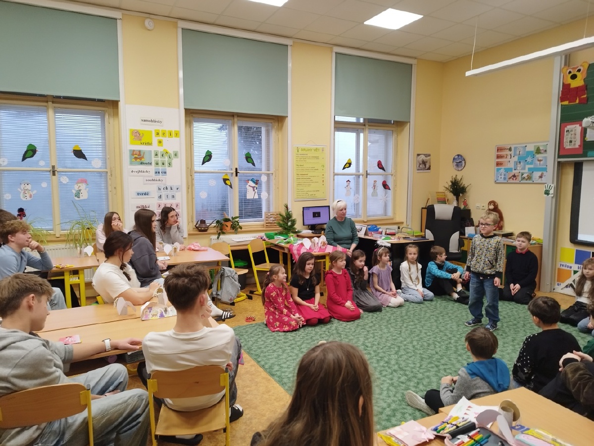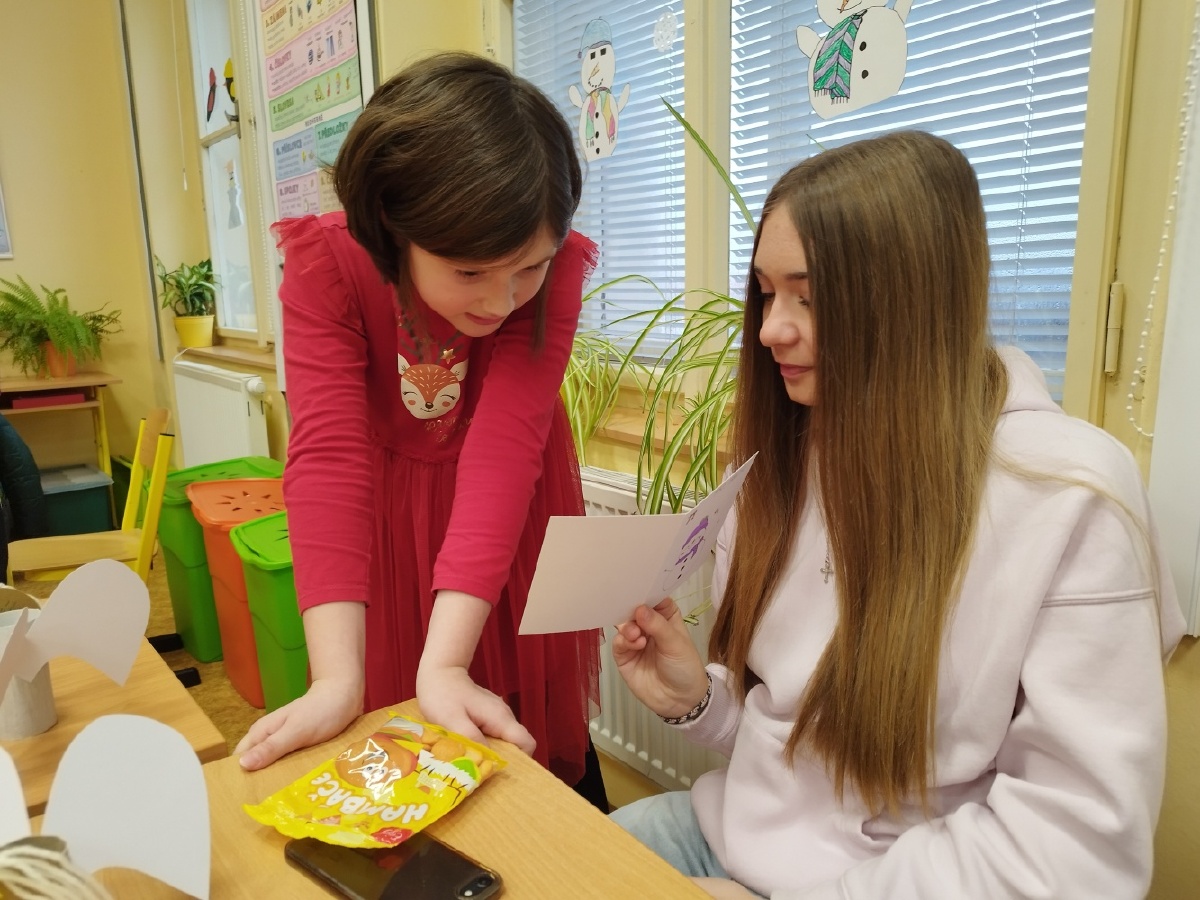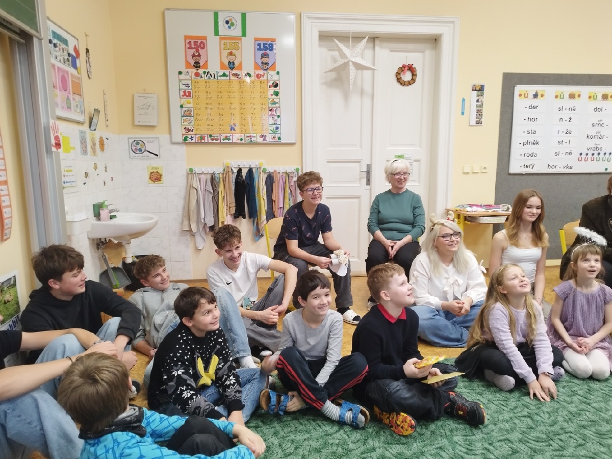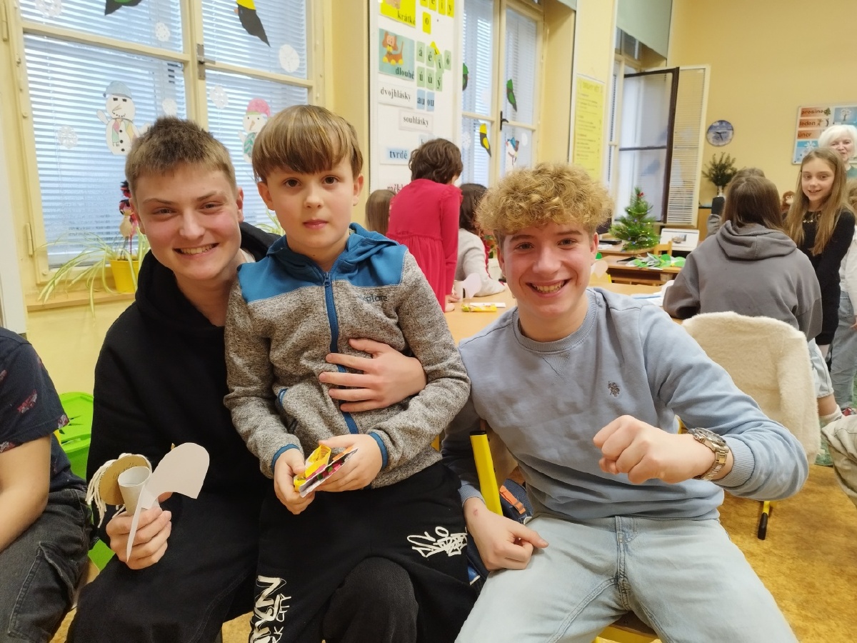 Děti ze II. B se poslední školní předvánoční den setkaly se svými patrony z IX. B. Obě třídy si připravily krásná přáníčka a druháčci předvedli pásmo plné vánočních básniček a koled, které deváťáci ocenili velkým potleskem. Popovídali si společně o Vánocích a na závěr si společně zahráli hru, kterou dostali druháčci pod stromeček. Báječně se u toho všichni bavili a společné chvíle si krásně užili. Mgr. Růžena Votrubová