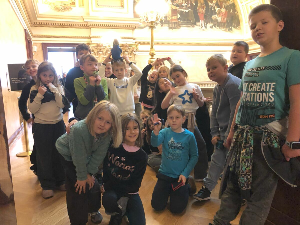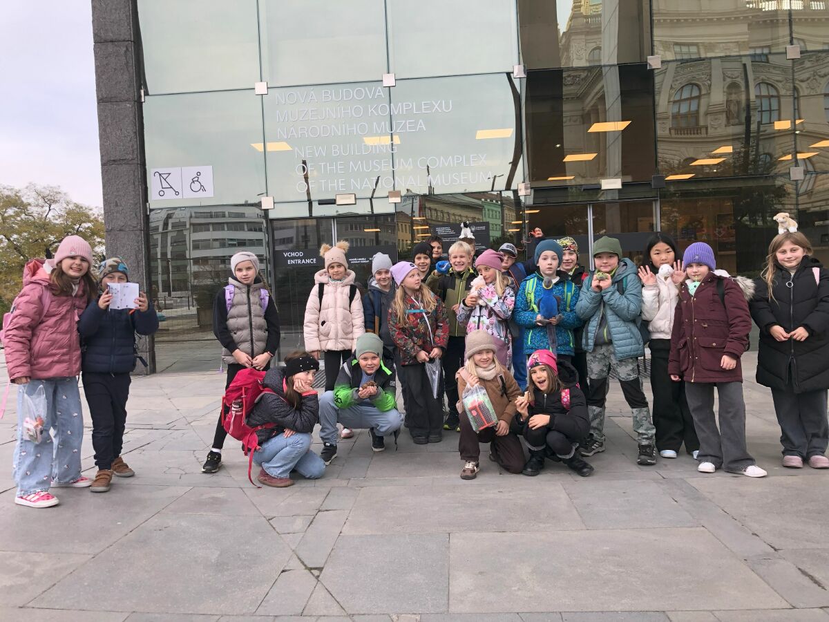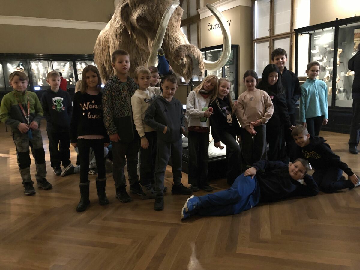 V pátek 14. listopadu, kdy se konal projektový den, se třeťáci z áčka a céčka vydali na velkou výpravu, jeli totiž vlakem do Prahy, do Národního muzea. Prohlédli si několik expozicí, Okna do pravěku, Sál minerálů a Zázraky evoluce. S úžasem obdivovali rozměry mamuta a plejtváka obrovského. Děti byly z Národního muzea nadšené, na památku si koupili pěkné suvenýry. Výlet do Prahy se vydařil a všichni si ho moc užili. Mgr. Marcela Chroustovská, Mgr. Radka Krejdlová