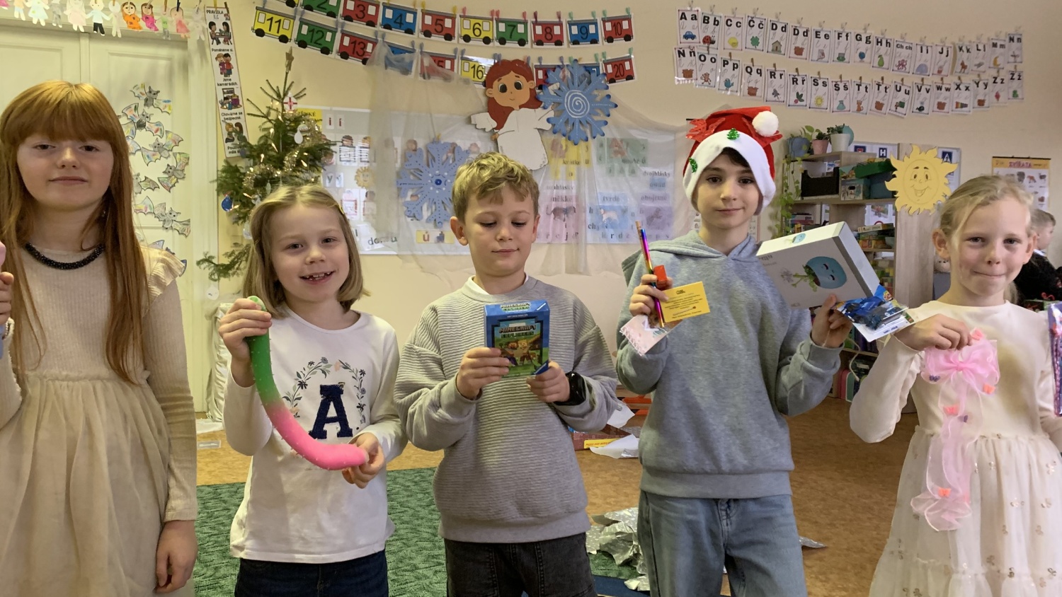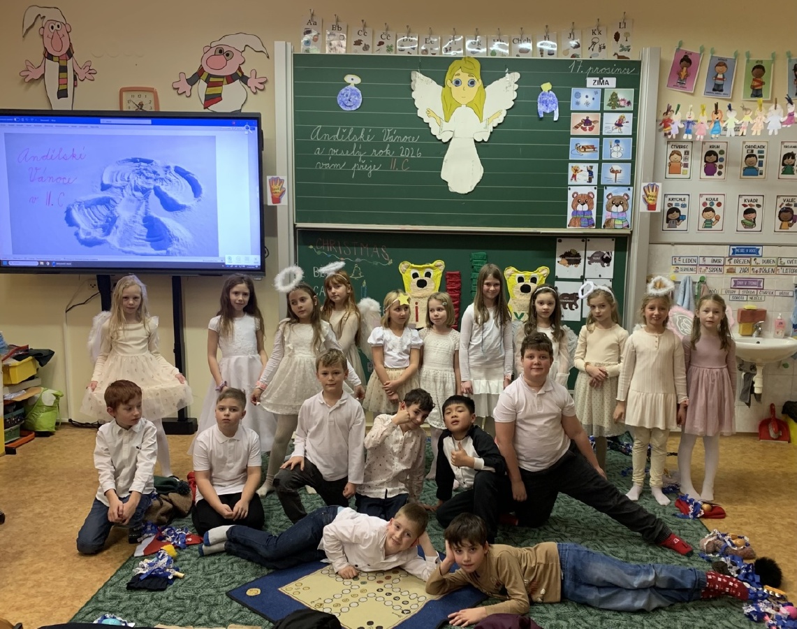 Druháčci z céčka měli v prosinci opravdu nabitý program. Navštívili městskou knihovnu, výstavu na Hrádku, kde si vyrobili anděla z korálků, také vzorně plnili každou výzvu ve školním adventním kalendáři - vyráběli společné přání, hráli piškvorkové turnaje, stali se na chvíli pány učiteli nebo hráli staré dobré (nejen) deskové hry….Vrcholem byla třídní besídka, kterou si pečlivě secvičili a zahráli rodičům, spolužákům i svým patronům z IX.C. Pozvali i paní ředitelku a dostali velikou pochvalu - hráli a zpívali krásně, nám dospělým, ukáply i slzy dojetí. Bohatou nadílku si opravdu všichni zasloužili. Mgr. Jaroslava Šibravová