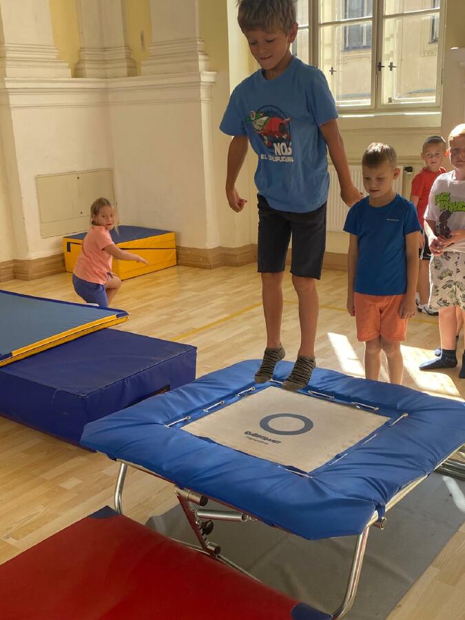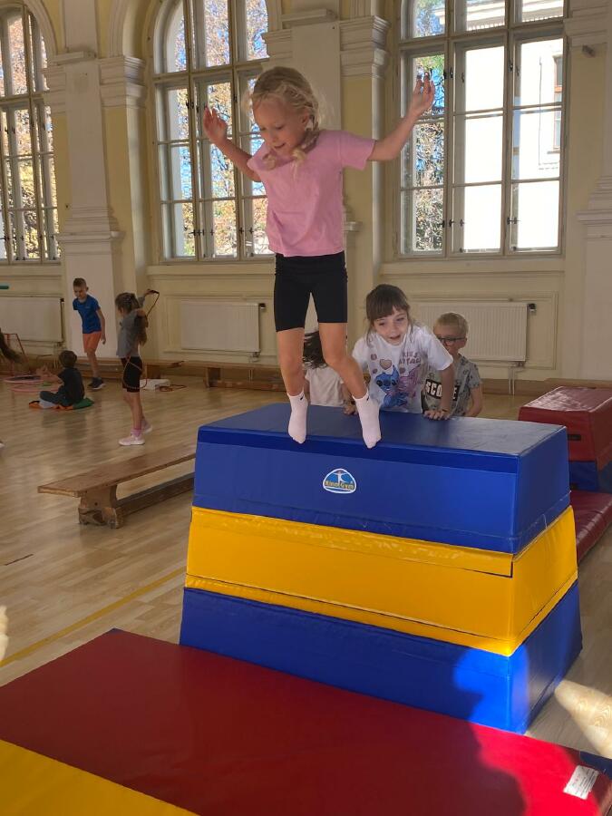 Děti z I. D jsou nadšené z hodin tělesné výchovy, které pro ně skvěle připravují trenéři v rámci projektu Trenéři do škol - Bedřich Franc, Josef Salák, David Holub a Andrea Kudláčková. Děti si už stihly vyzkoušet řadu netradičních soutěží a pohybových aktivit. Učí se spolupracovat, plnit dané úkoly a velký důraz je kladen také na fair play chování. Hodiny tělesné výchovy probíhají ve velmi radostné a přátelské atmosféře. Pohyb je pro děti zábavou a přirozenou součástí školního dne. Mgr. Štěpánka Menová