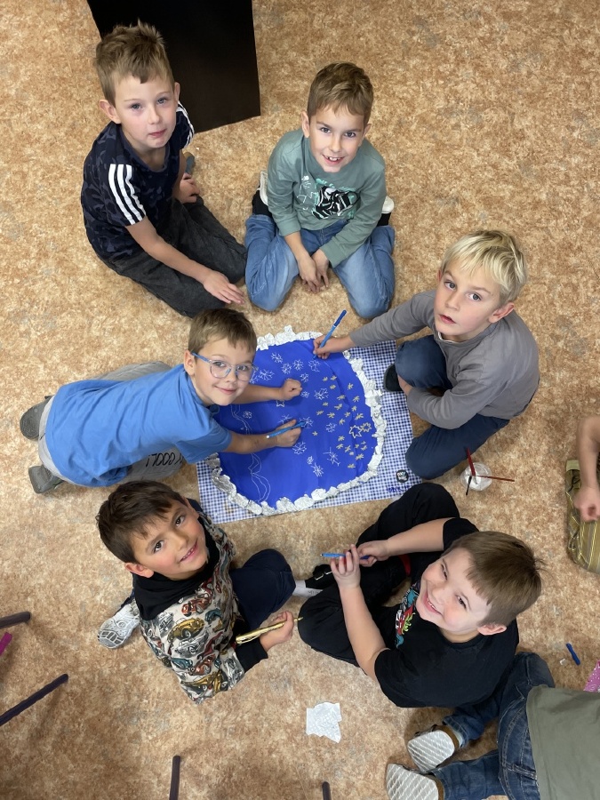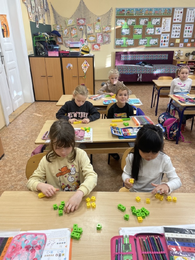 Prvňáci z béčka mají za sebou veselý podzim. Každý den se učíme něco nového. Čteme první příběhy, počítáme s kostičkami a také spolupracujeme ve skupinách. Společně jsme vytvořili obrazy do knihovny a při ukázkové hodině jsme s radostí přivítali rodiče, aby nahlédli do naší práce. Velkým zpestřením byl příchod nového trenéra Bédy France, který pro nás připravil netradiční běhání s novinami. Ve třídě jsme si udělali i naše vlastní peklo. A jak dnes řekly samy děti: Těšíme se na Vánoce! Mgr. Martina Výborná