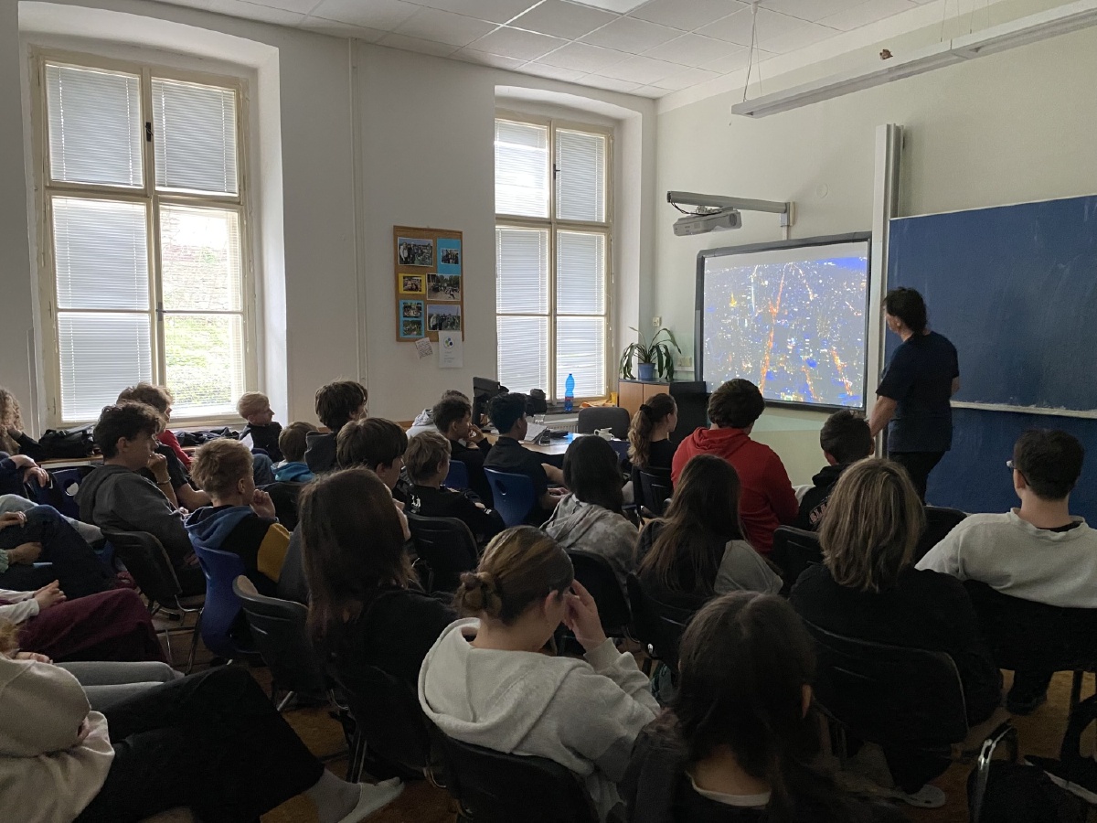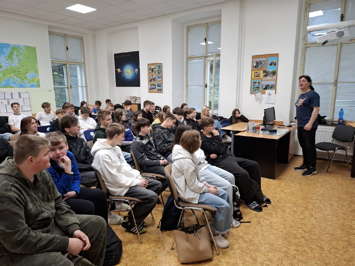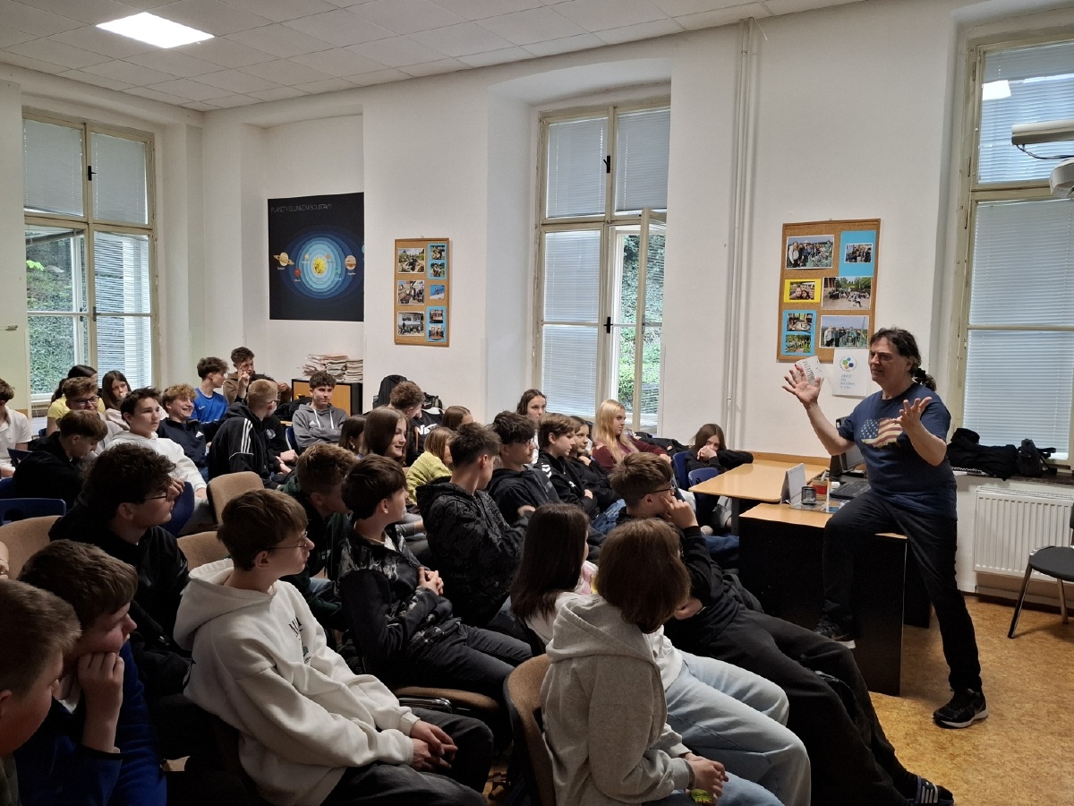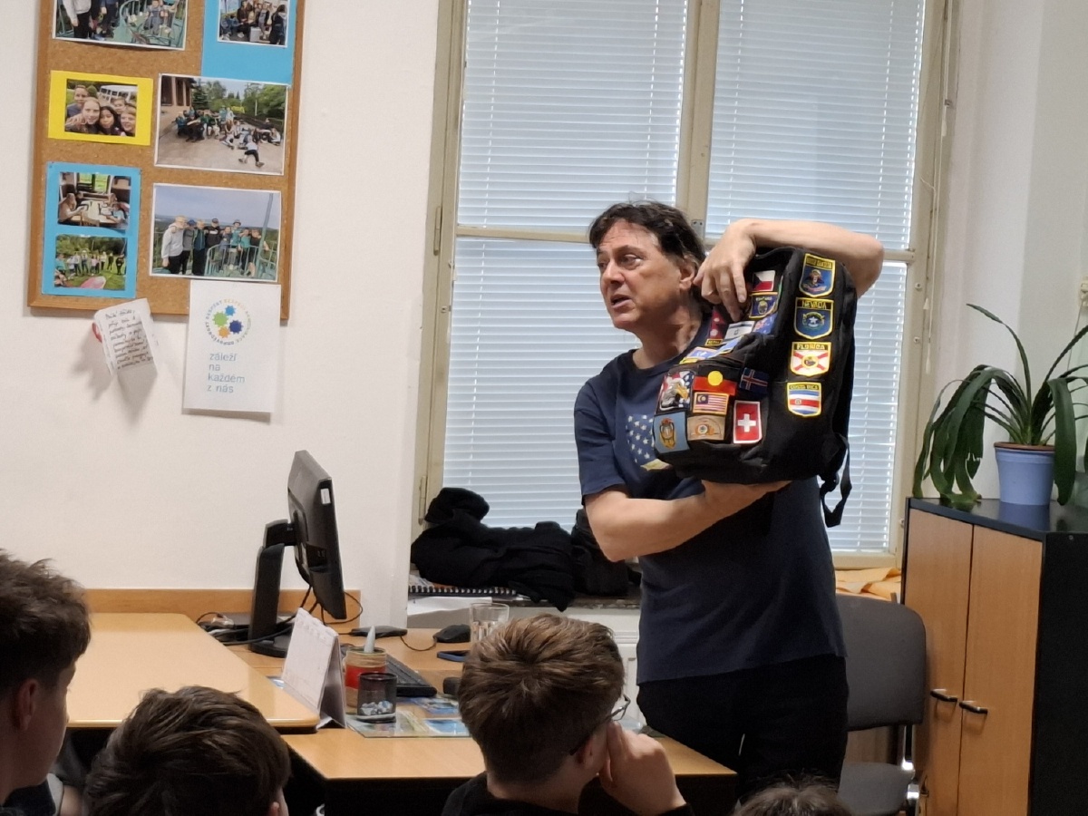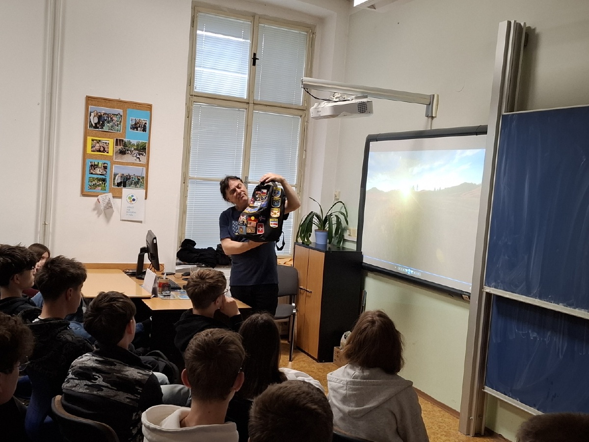 Ve čtvrtek 16. dubna proběhla přednáška Mgr. Karla Kocůrka v angličtině - poutavé vyprávění o jeho cestách po Spojených státech amerických. Akce proběhla v rámci podpory motivace ke studiu cizích jazyků a představovala vítané zpestření výuky. Žákům 2. stupně přinesla novou a cennou zkušenost - možnost zažít angličtinu jinak. Program nabídl pestrý pohled na tuto rozmanitou zemi. Źáci se seznámili nejen s turisticky známými městy, jako jsou New York nebo Chicago, ale také s méně obvyklými místy mimo hlavní turistické trasy. Velký ohlas vzbudily zejména záběry z indiánských rezervací, včetně ukázek tradičních rituálů, které běžní turisté nemají možnost spatřit. Nechyběly ani záběry a vyprávění o americké přírodě a zvířatech. Na závěr zbyl čas i na diskuzi, studenti se ptali a aktivně zapojovali, většina z nich se snažila mluvit anglicky. Podle reakcí se přednáška žákům líbila a odnesli si z ní zajímavou zkušenost. Mgr. Hana Votavová