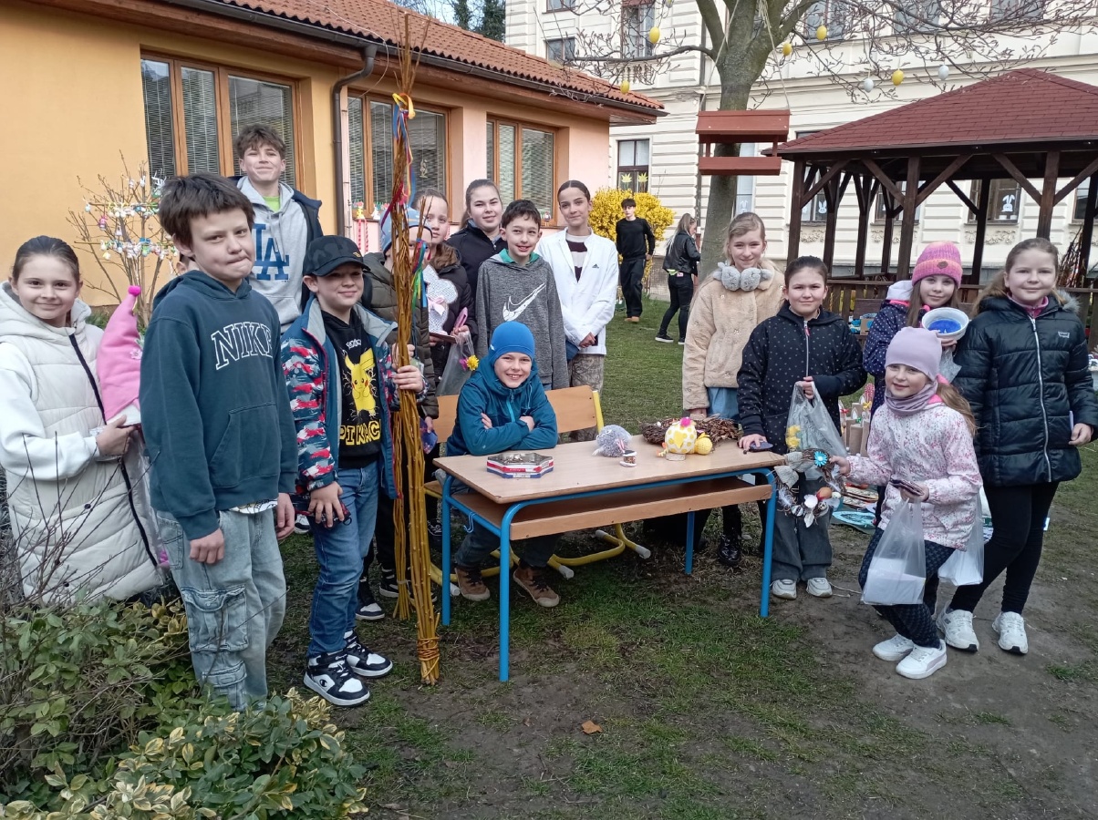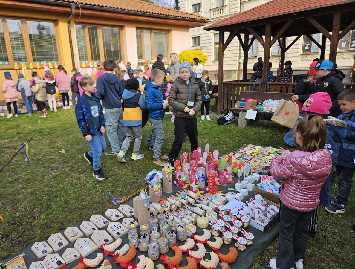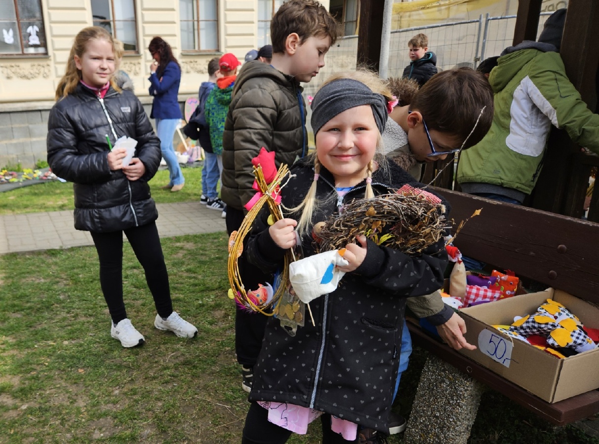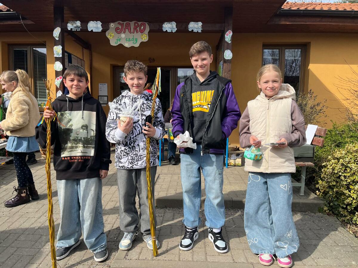 Na úterý 24. března jsme naplánovali tradiční velikonoční jarmark. Jako každý rok jsme vyrobili jarní a velikonoční dekorace - zasili jsme osení, upletli pomlázky a věnce, upekli velikonoční dobroty, vyrobili beránky, zápichy, namalovali kraslice a spoustu dalšího jsme si vyzkoušeli. Svítilo krásně sluníčko, nálada byla výborná. Děkujeme panu starostovi, že si ve svém nabitém programu našel čas a zavítal k nám. Děkujeme také všem, kteří přišli a zakoupením dekorací přispěli na naši další činnost - výtěžek v celkové výši 45 876 byl vložen do rezervního fondu školy. Pevně věříme, že vás v období blížících se svátků naše výrobky potěší...