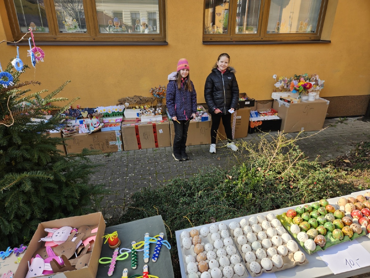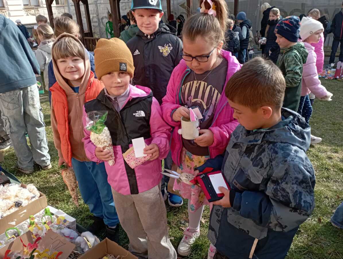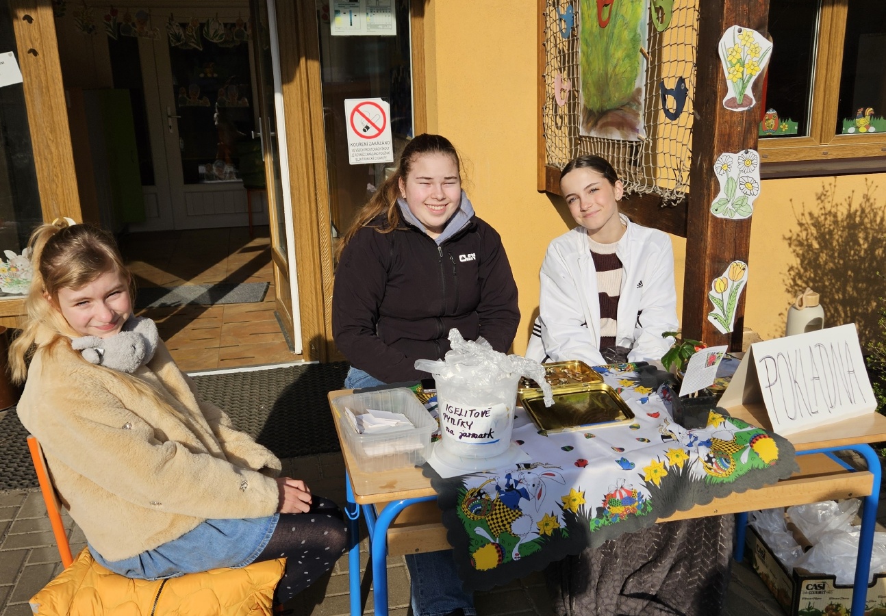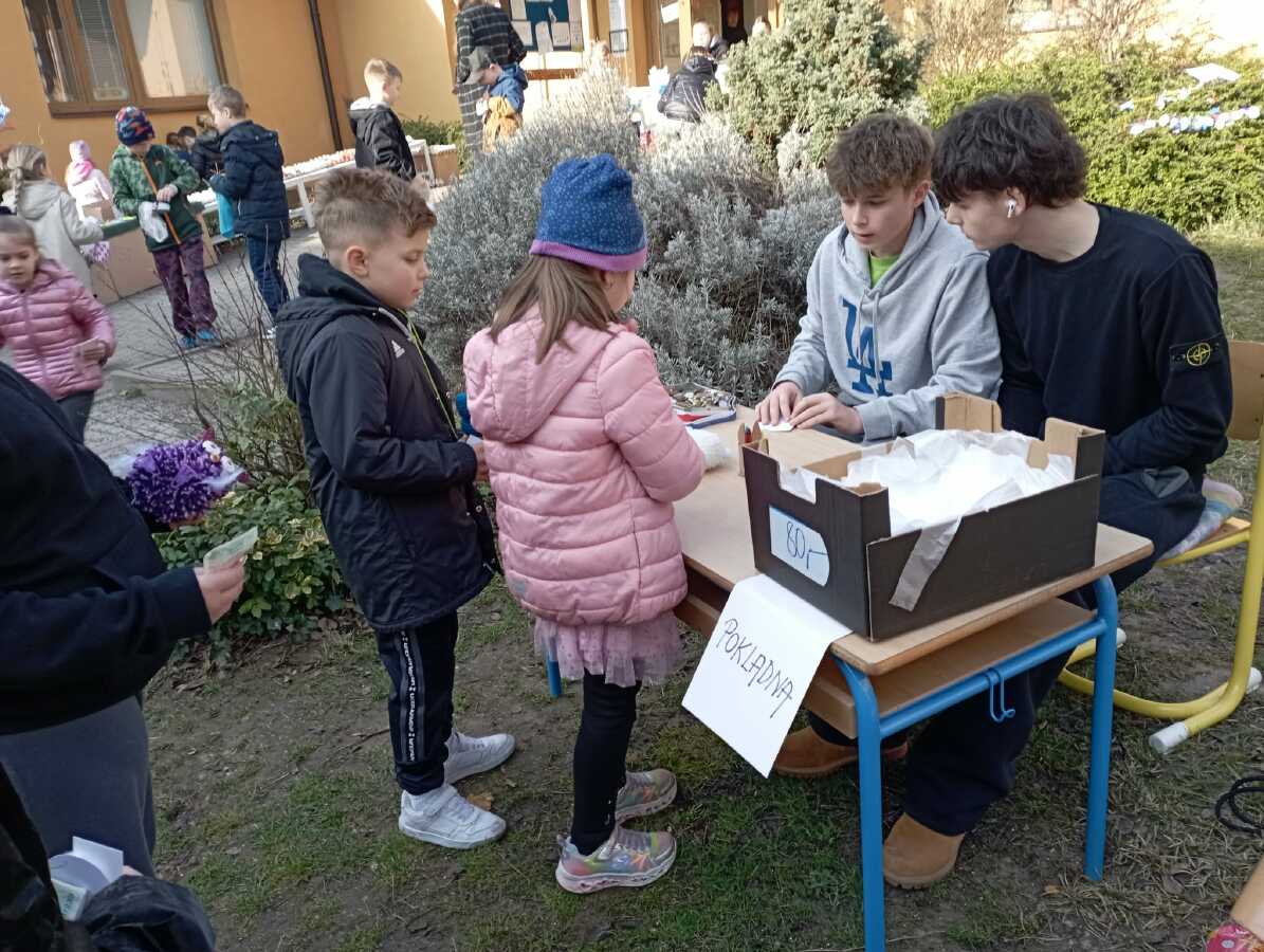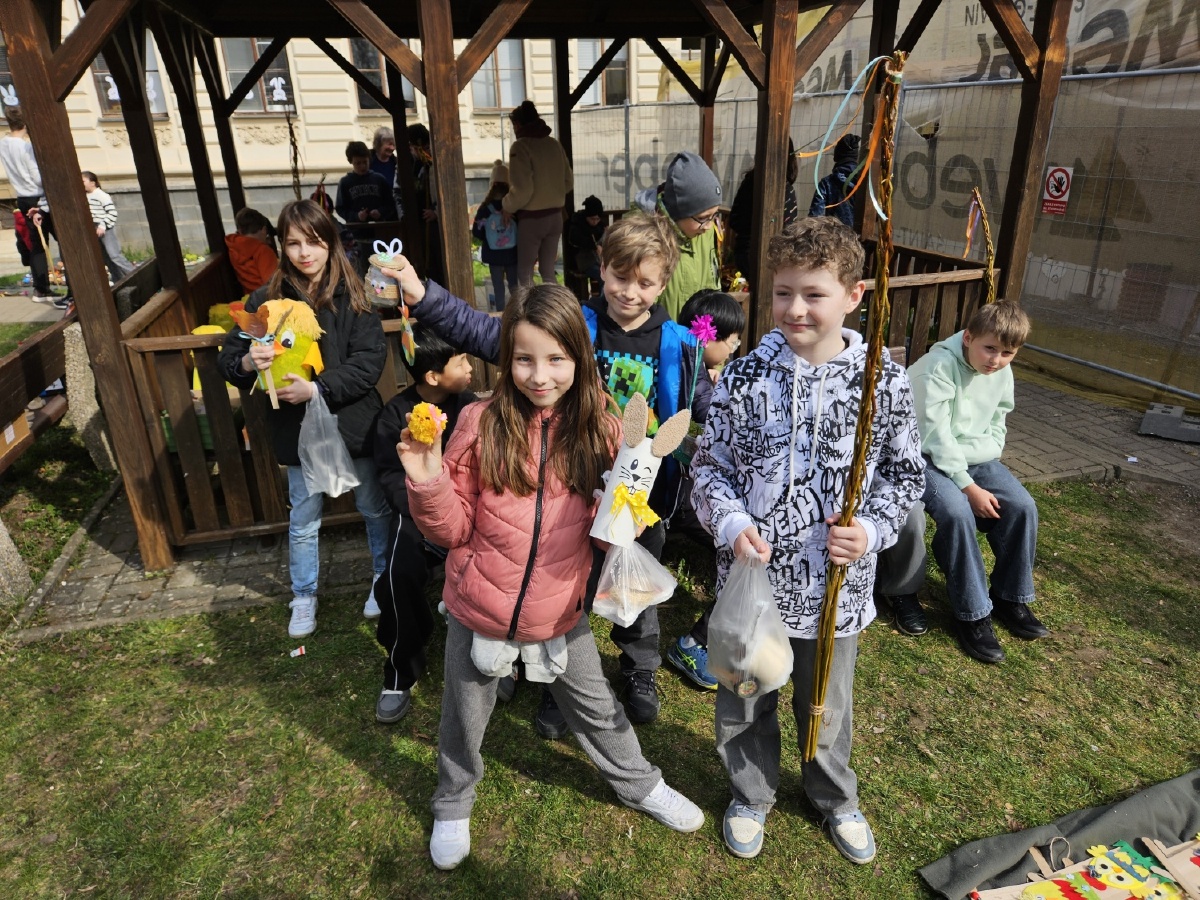 Na úterý 24. března jsme naplánovali tradiční velikonoční jarmark. Jako každý rok jsme vyrobili jarní a velikonoční dekorace - zasili jsme osení, upletli pomlázky a věnce, upekli velikonoční dobroty, vyrobili beránky, zápichy, namalovali kraslice a spoustu dalšího jsme si vyzkoušeli. Svítilo krásně sluníčko, nálada byla výborná. Děkujeme panu starostovi, že si ve svém nabitém programu našel čas a zavítal k nám. Děkujeme také všem, kteří přišli a zakoupením dekorací přispěli na naši další činnost - výtěžek v celkové výši 45 876 byl vložen do rezervního fondu školy. Pevně věříme, že vás v období blížících se svátků naše výrobky potěší...