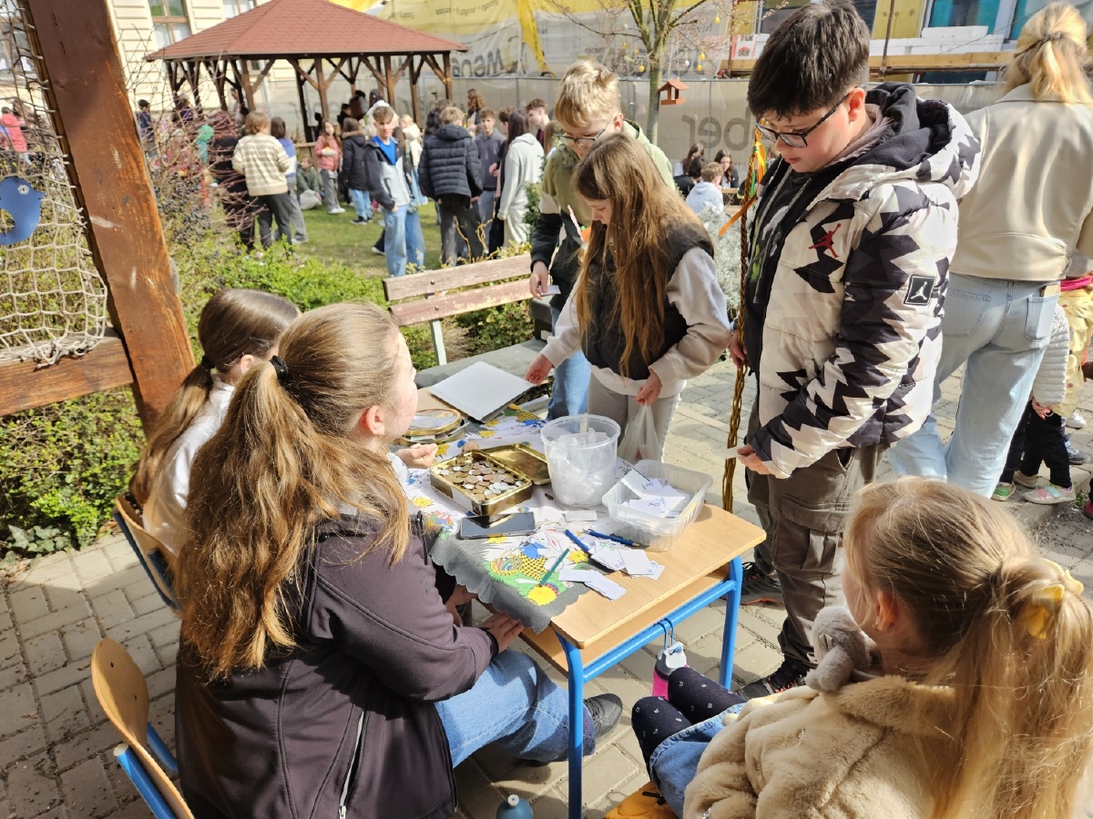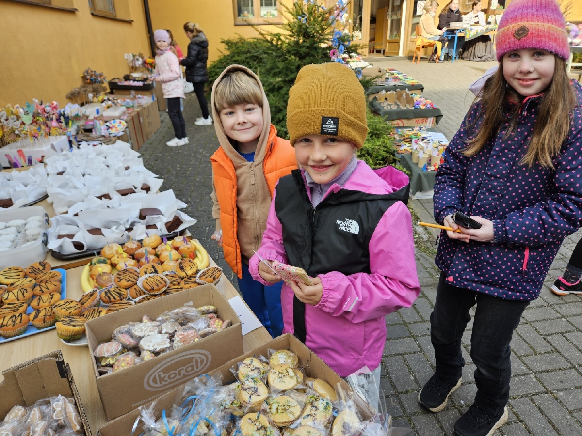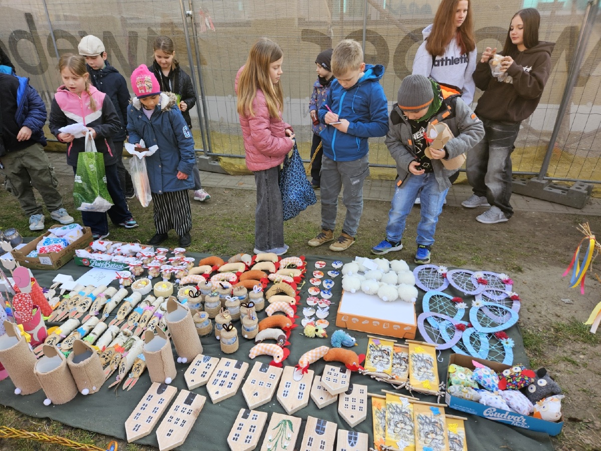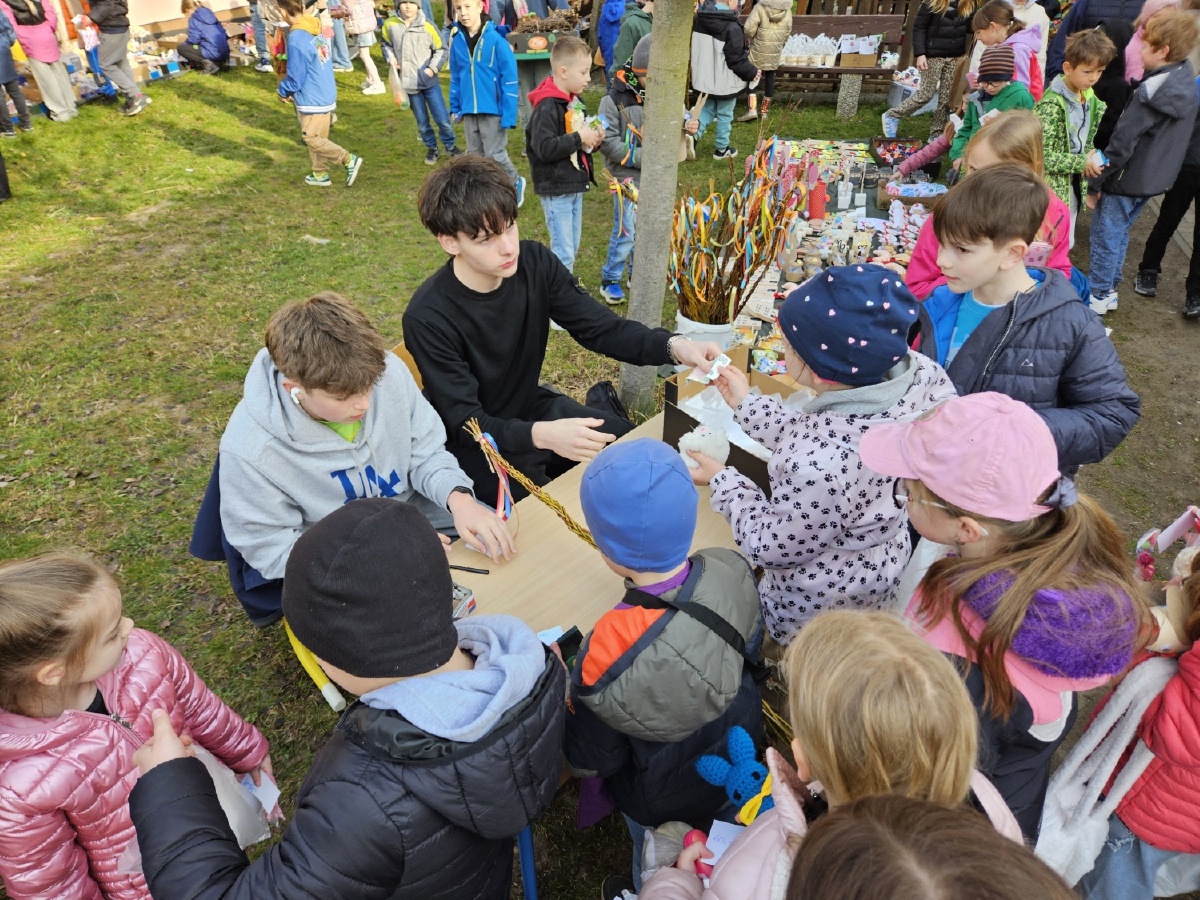 Na úterý 24. března jsme naplánovali tradiční velikonoční jarmark. Jako každý rok jsme vyrobili jarní a velikonoční dekorace - zasili jsme osení, upletli pomlázky a věnce, upekli velikonoční dobroty, vyrobili beránky, zápichy, namalovali kraslice a spoustu dalšího jsme si vyzkoušeli. Svítilo krásně sluníčko, nálada byla výborná. Děkujeme panu starostovi, že si ve svém nabitém programu našel čas a zavítal k nám. Děkujeme také všem, kteří přišli a zakoupením dekorací přispěli na naši další činnost - výtěžek v celkové výši 45 876 byl vložen do rezervního fondu školy. Pevně věříme, že vás v období blížících se svátků naše výrobky potěší...