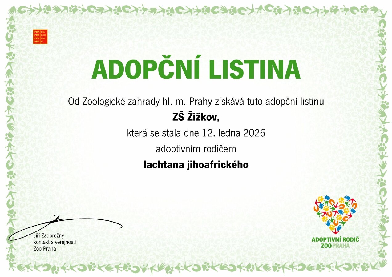 V pondělí 12. ledna jsme vybírali zvíře, které podpoříme v pražské ZOO tento kalendářní rok. Hlasování bylo jednoznačné - s velkým náskokem vyhrál lachtan jihoafrický. Částka 12 000 Kč byla hned v pondělí odeslána do ZOO a obratem jsme obdrželi certifikát o adopci. Celkem se pro tento rok na charitativní účely vybralo 18 800 Kč. Děkujeme všem, kteří přispěli a veliké speciální poděkování patří třídě III. C, která přispěla částkou 4 600 Kč. Na příští schůzce parlamentáří rozhodnou, jak naložíme se zbývajícími penězi - prodiskutují to ve svých třídách.