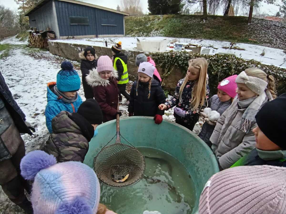 Od minulého týdne navštívilo šest oddělení naší družiny exkurzi u rybníku Haering v Kutné Hoře. Děti poznávaly ryby, dokonce si je zkusily i vylovit a na některé sáhnout. Kolem rybníku jsme šli procházkou a během výkladu jsme se dozvěděli spoustu zajímavých informací nejen o něm.