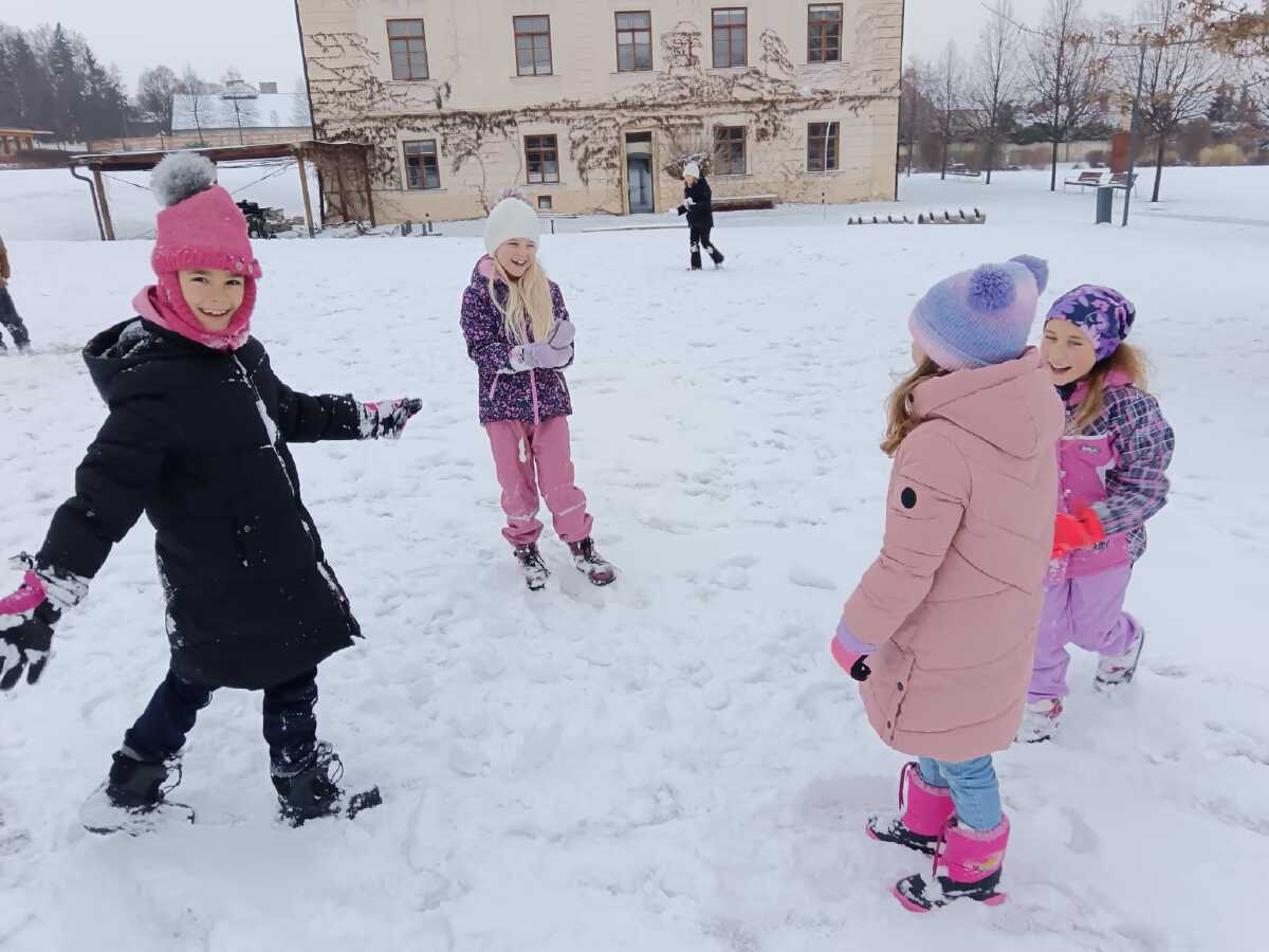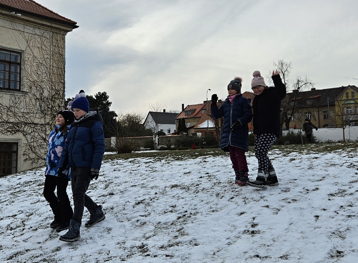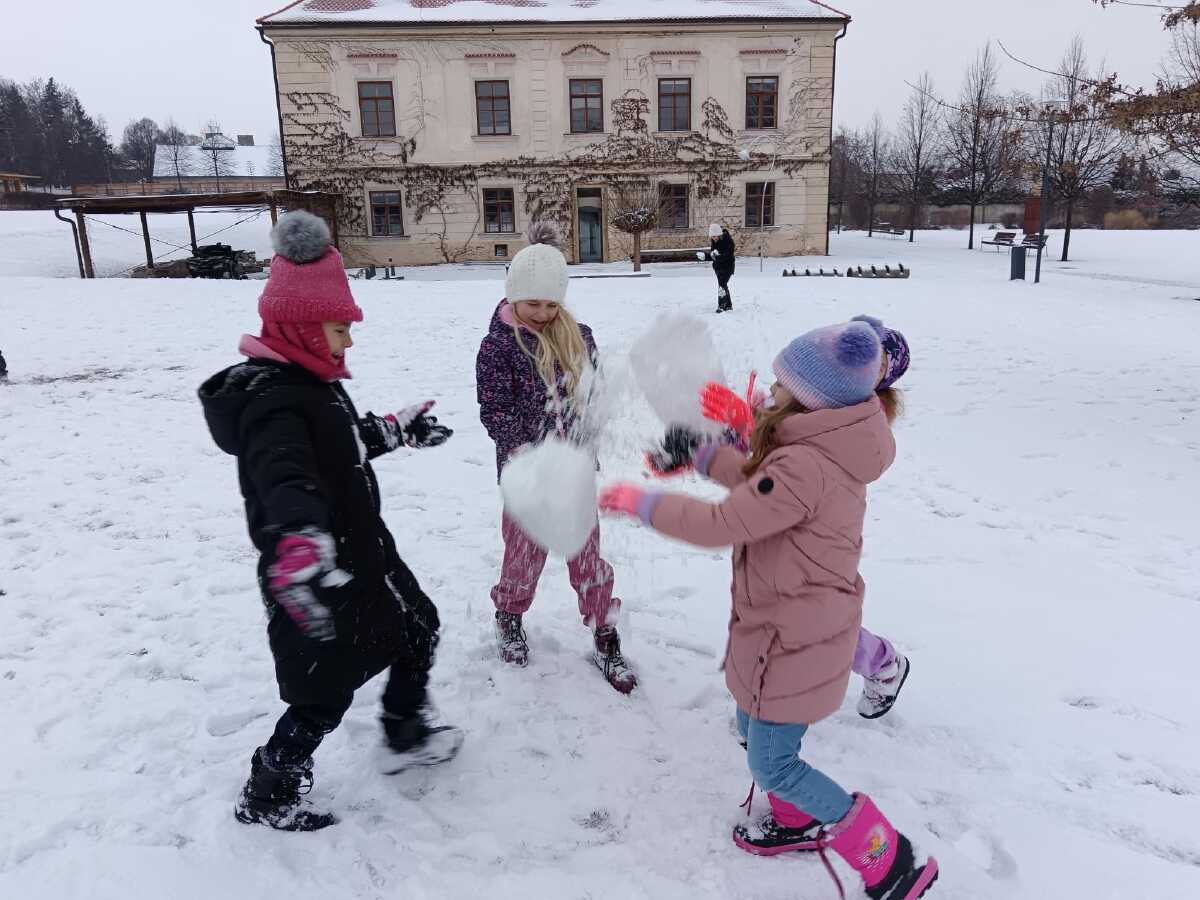 Po vánočních prázdninách jsme se radovali ze sněhové nadílky a každý den si ji užíváme, například v rámci vycházek do okolí.