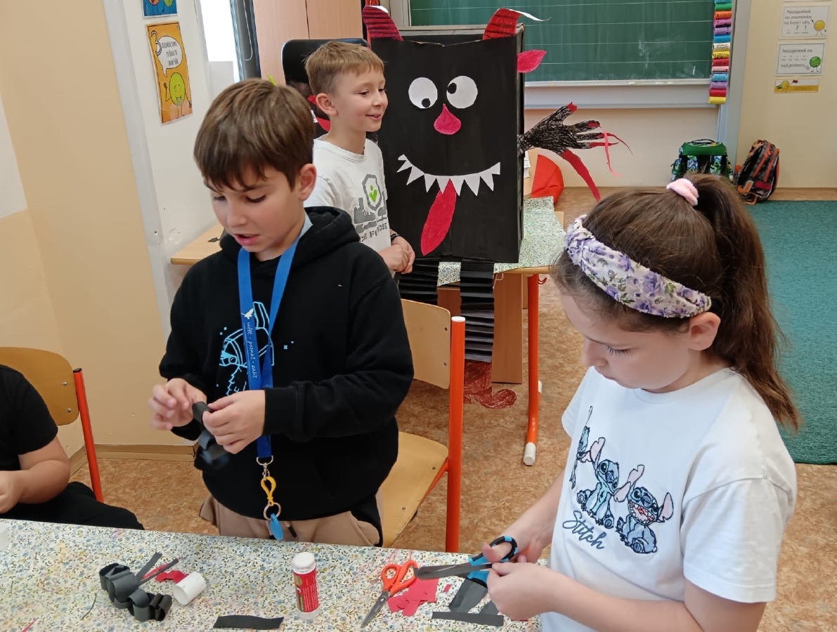 Děti z naší družiny se s nadšením zapojily do výroby prostorových 3D výrobků, které budou součástí chystané výstavy Peklo v Dominiku. Při práci využily různé materiály i svou fantazii a výsledkem jsou originální a nápadité výtvory, které stojí za zhlédnutí. Zapojilo se všech 10 oddělení. Výstava se bude konat od 3. listopadu do 7. prosince v DDM Kutná Hora a určitě nabídne nejen pohled na dětskou tvořivost, ale také ukázku šikovnosti a týmové spolupráce našich malých výtvarníků.