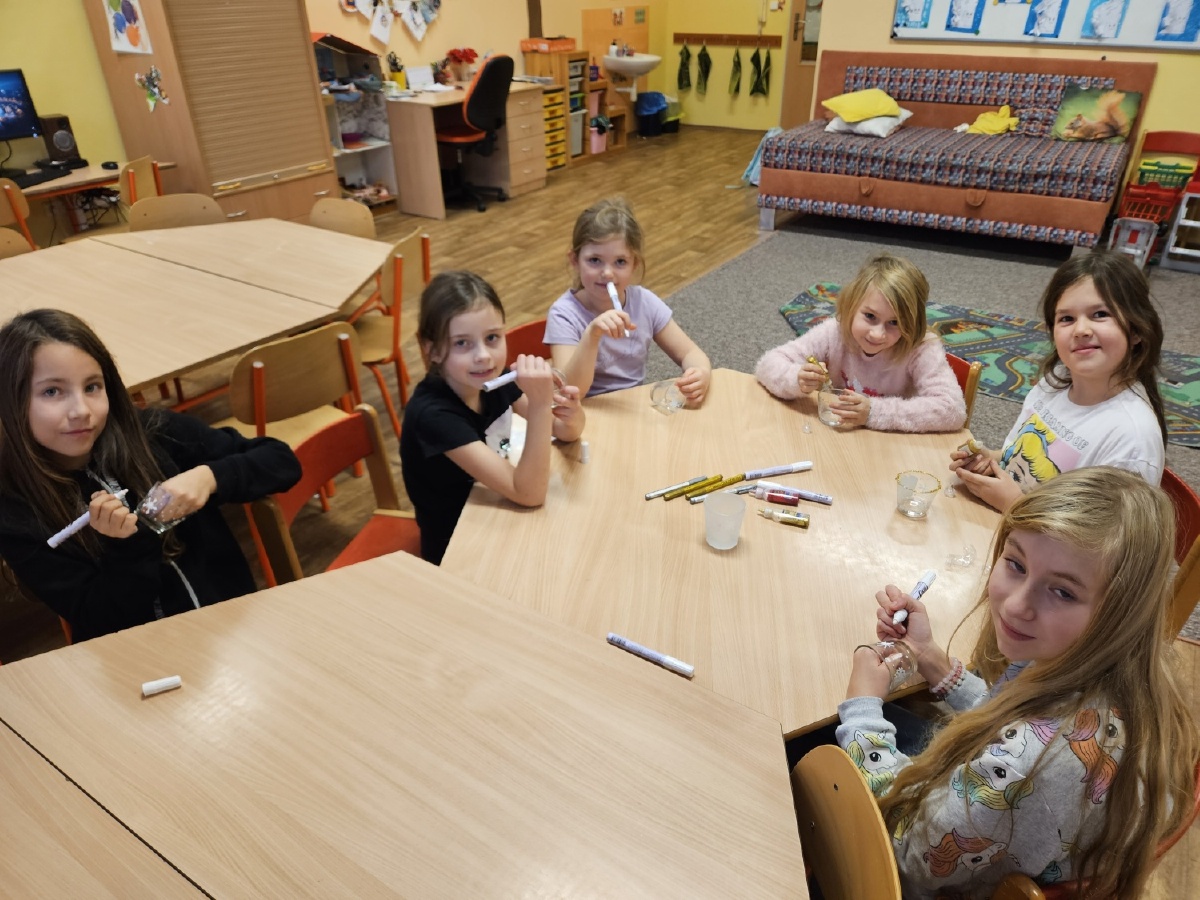 Při každém setkání v kroužku Šikovných ručiček si děti vyrábí různé dekorace, přáníčka,zaměřují na určité téma a vyzkouší si i jiné výtvarné techniky od zmizíkování, práci s vlnou a zdobení svícnu, až po kreslení a zajímavou práci s papírem.