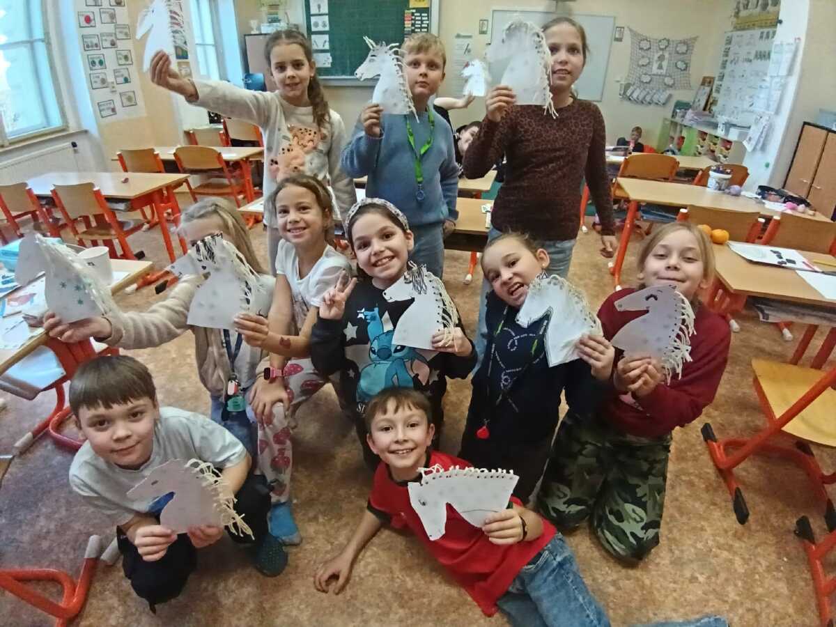 Svátek svatého Martina jsme oslavili nejen povídáním o tradici Sv. Martina, ale i tvořením. Děti každoročně 11. listopadu nedočkavě vyhlížejí, zda Martin přijede na bílém koni a dospěláci se zase těší na husí pečínku. Tak jsme si ve školní družině s radostí vytvořili a namalovali spoustu krásných dekorací a obrázků s tímto tématem. Někteří z nás si i na koni "zajezdili"...