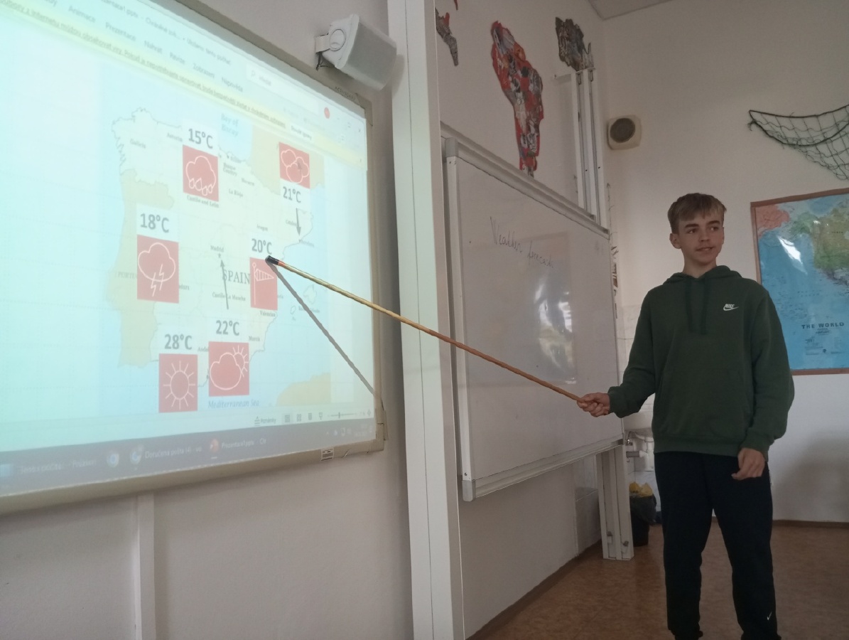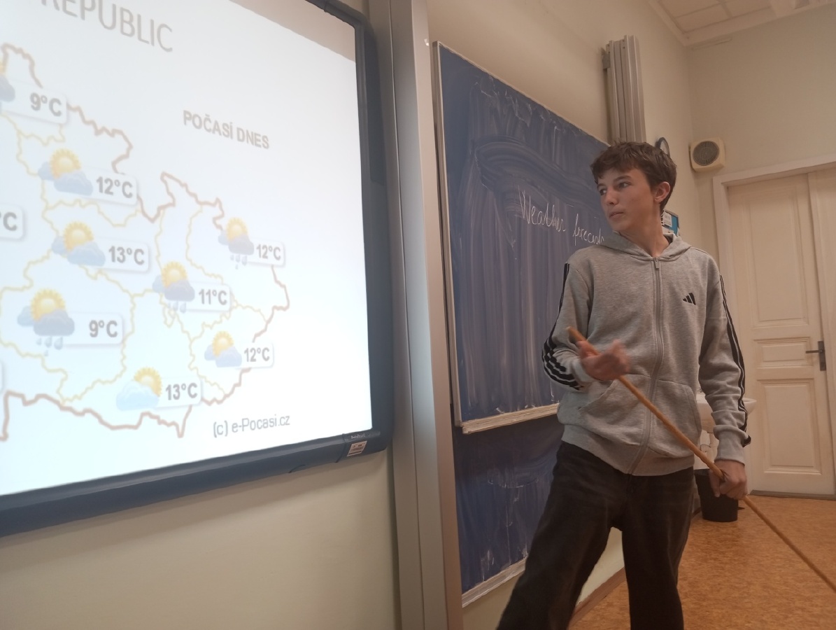 V hodinách angličtiny si žáci 8. tříd vyzkoušeli netradiční, ale zábavný výstup – stali se moderátory počasí. Připravili si vlastní předpověď počasí, sami si zvolili zemi i datum, ke kterému se jejich předpověď vztahovala, a za pomoci dříve probrané slovní zásoby si vytvořili krátký text, který poté prezentovali. Tato aktivita sloužila nejen k procvičení slovní zásoby na téma počasí, ale zároveň rozvíjela mluvní dovednosti, prezentační schopnosti a sebevědomí při vystupování před ostatními – to vše v angličtině. Někteří žáci pojali úkol velmi kreativně a připravili celé scénky, jiní naopak překonávali svou ostýchavost při mluvením před spolužáky. Podobné výzvy pomáhají žákům nejen rozvíjet jazyk ale i odvahu promluvit. Zároveň dělají výuku angličtiny pestřejší a přibližují ji skutečným situacím ze života. Mgr. Hana Votavová