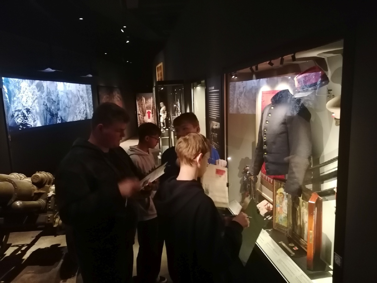 Ve čtvrtek 23. dubna navštívili žáci VIII. C Armádní muzeum v Praze. Na 5000m2, čtyřech patrech expozic, mapujících vývoj od středověku až po současnost, mohli osmáci vidět stovky autentických artefaktů, od uniforem rakousko-uherské armády, přes zbraně, až po osobní předměty vojáků, které doplňovaly jejich příběhy. Součástí exkurze byl i připravený výukový program s názvem Příběh Velké války. Jednotlivé týmy plnily úkoly v různých sálech a mohly tak zažít interaktivní prohlídku, například průchod zákopy, což byl pro všechny veliký zážitek. Osmáci si vyzkoušeli i práci badatele a své výsledky pak zprostředkovali ostatním spolužákům. Propojili tak školní učivo s reálnými historickými artefakty a detailněji se ponořili do vojenství a politiky historie let 1914- 1918. Z práce osmáků jsme měli radost, pochvalu si vysloužili i od lektorky. Mgr. Jana Samková, Mgr. Hana Ratajíková