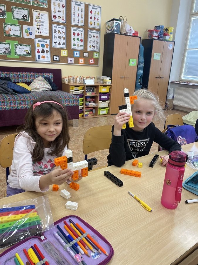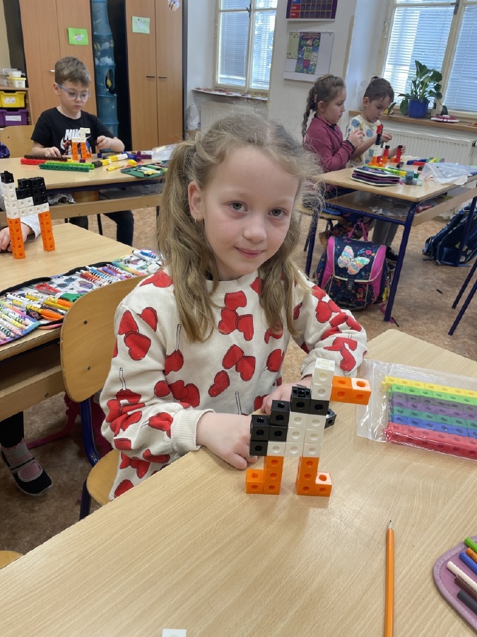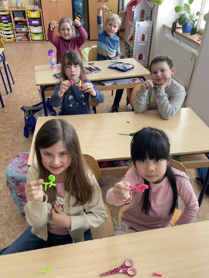 Program u prvňáčků v béčku byl i v měsíci březnu velmi pestrý. Děti stavěly stavby z kostek a každý si vytvořil svého čápa. Učili jsme se také venku, kde jsme poznávali jarní přírodu a květiny probouzející se po zimě. Při tělocviku si prvňáčci užili spoustu zábavy s trenéry, hráli jsme s míči, „vařili“ burgery a pizzu a zahráli si i hru na semafor. Začali jsme s programem Zipyho kamarádi, v jehož rámci si děti vytvořily vlastní strašilku z drátků. V angličtině se učíme základní fráze, barvy a zvířata. Navštívili jsme školní velikonoční jarmark a místo aktovek jsme si přinesli jiná, originální zavazadla. Čeká nás ještě spousta akcí, na které se těšíme, a přejeme všem krásné a pohodové Velikonoce. Mgr. Martina Výborná