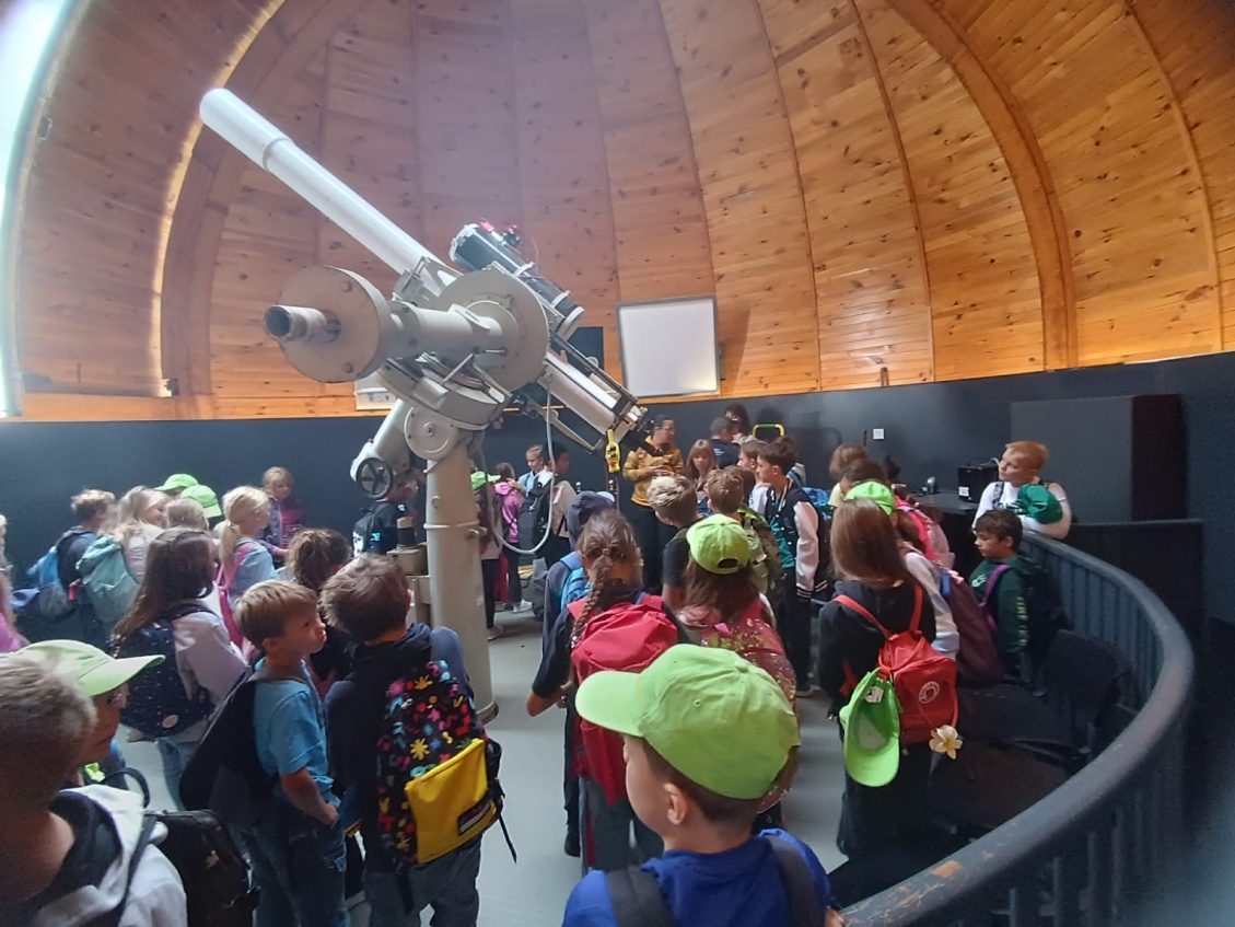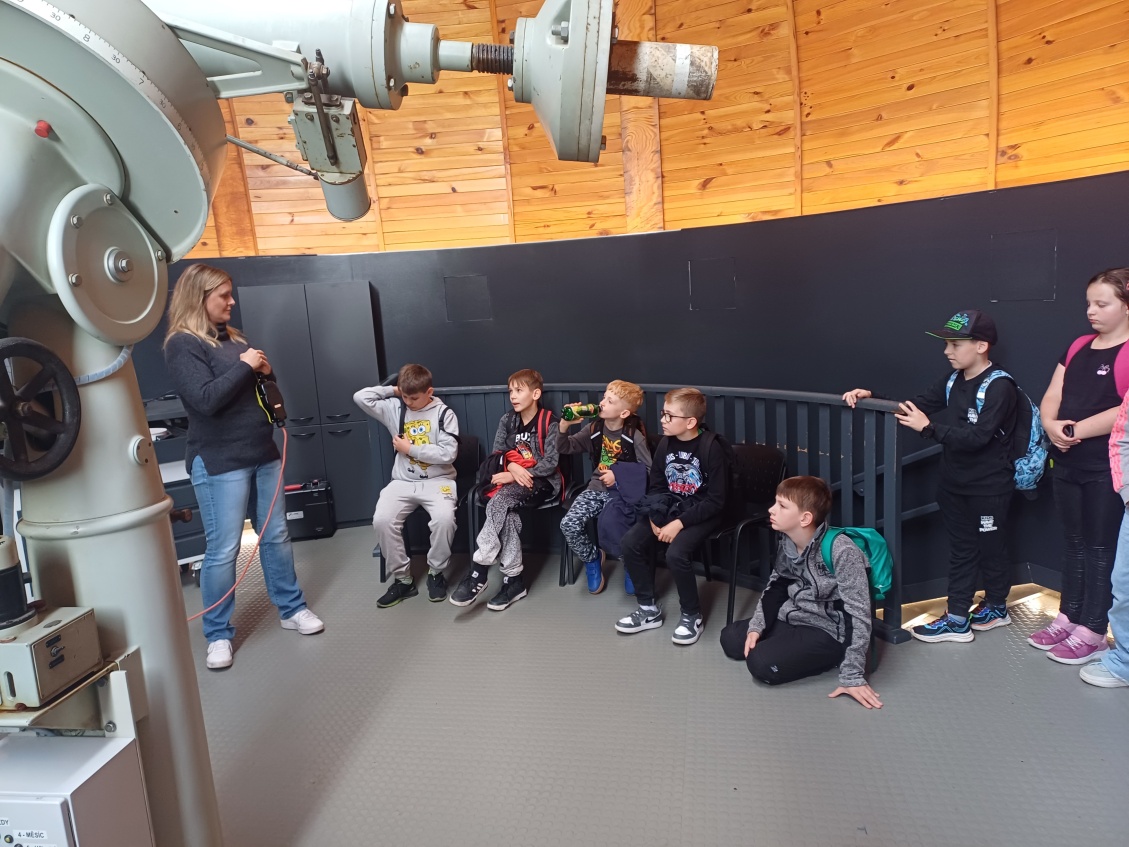 Děti ze 4. ročníku navštívily Planetárium v Hradci Králové, kde se zúčastnily programu zaměřeného na Slunce, Zemi, planety a jejich měsíce, střídání dne a noci, roční období a další fascinující astronomické jevy. V rámci programu žáci získali základní znalosti o pozorování oblohy a virtuálně se podívali na Sluneční soustavu. Dále si prohlédli dalekohledy a při příznivém počasí pozorovali Slunce a sluneční skvrny. Pořad byl součástí výuky přírodovědy, konkrétně vzdělávací oblasti Člověk a jeho svět. Děti se tak seznámily s tématy, které souvisejí s jejich učivem o vesmíru a přírodních jevech.