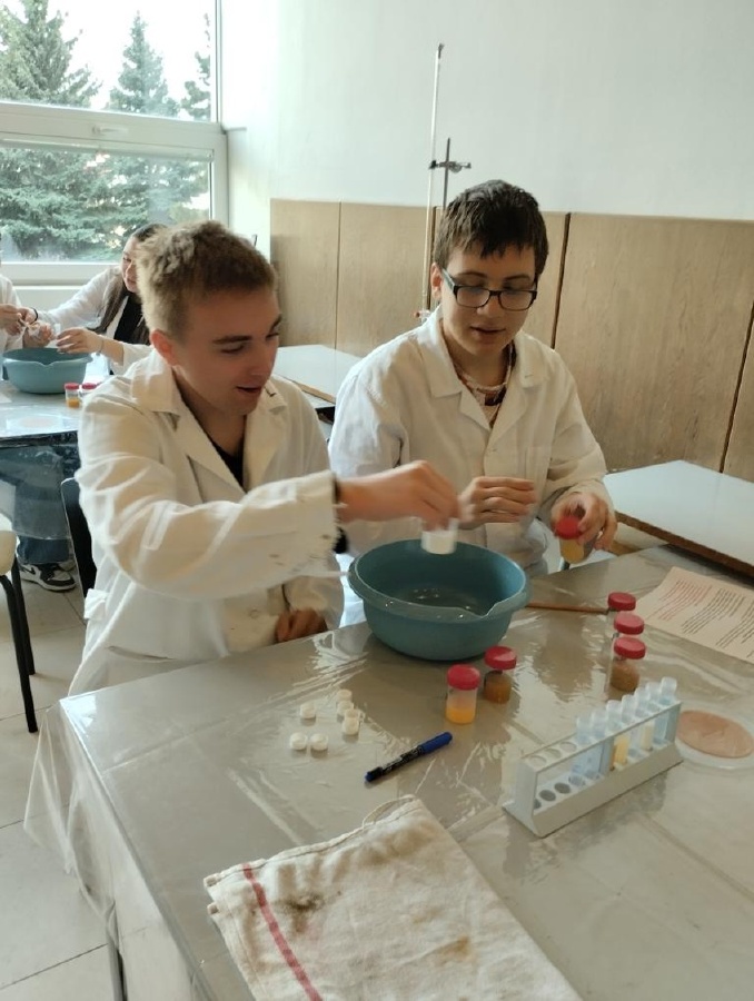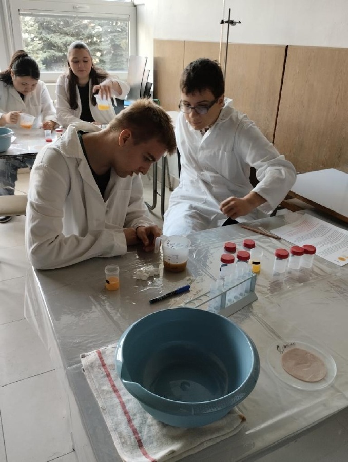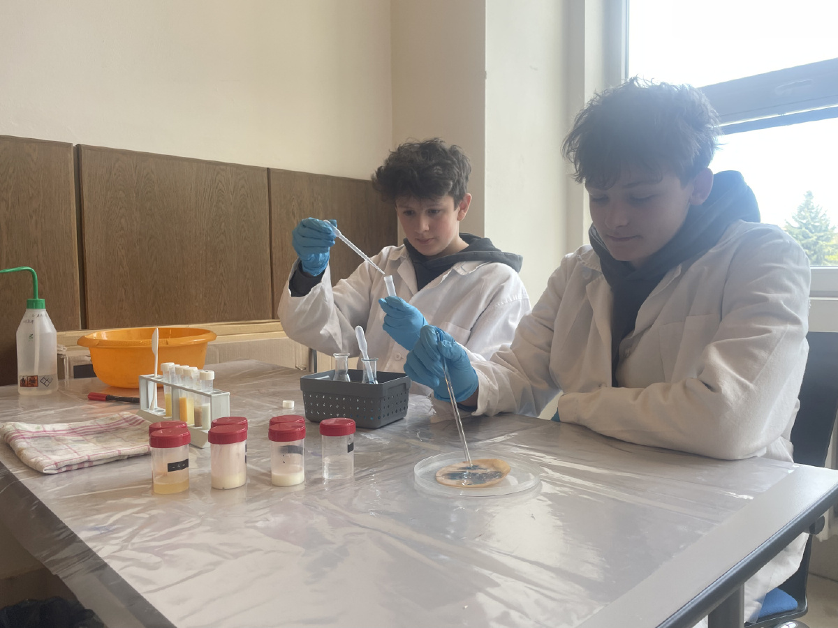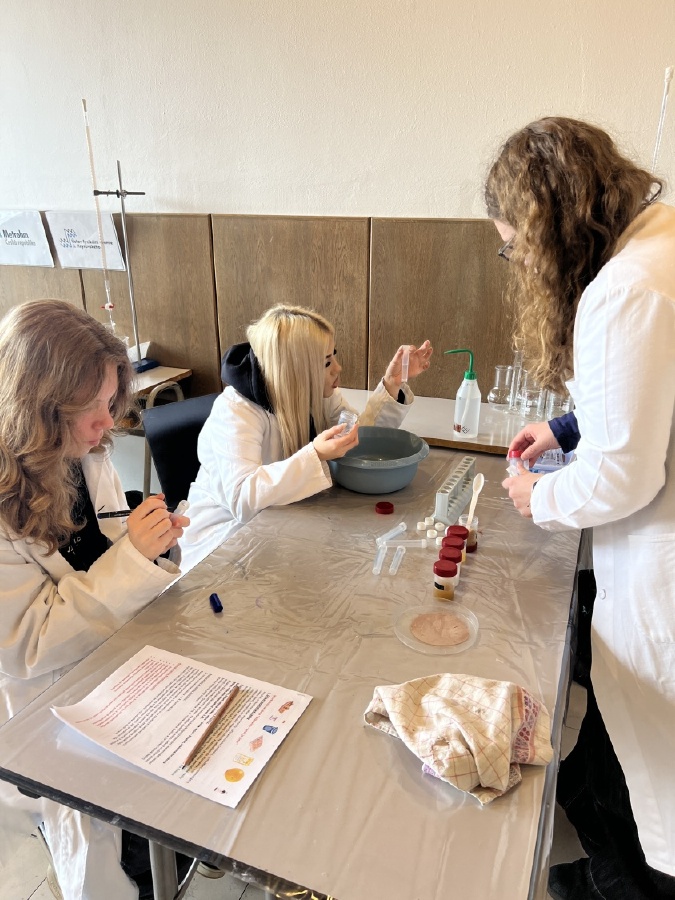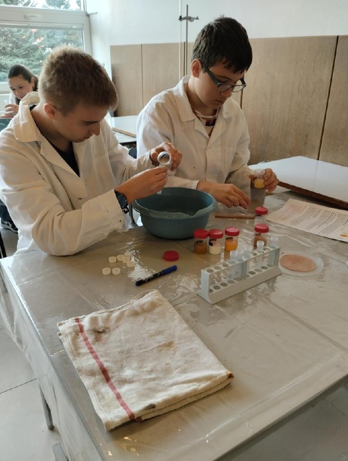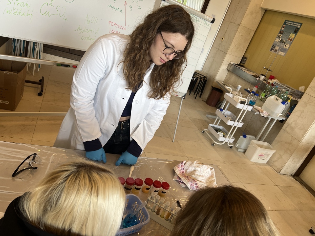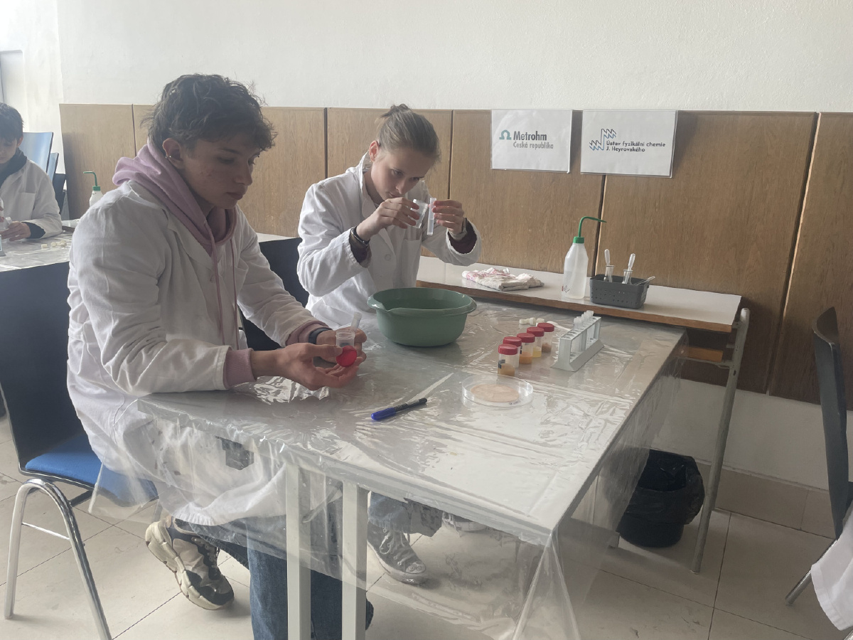 Naši deváťáci navštívili Ústav fyzikální chemie J. Heyrovského, kde si v rámci workshopu vyzkoušeli práci v laboratoři. Žáci se věnovali analýze a stavbě molekulárních modelů organických látek a praktickým důkazům bílkovin ve vzorcích potravin (mléko, jogurt, vajíčko, šunka, džus). Právě možnost samostatného experimentování a práce s modely pomohla žákům lépe pochopit strukturu látek, o kterých se běžně učíme v hodinách. Celý program doplnilo seznámení s odkazem nositele Nobelovy ceny Jaroslava Heyrovského. Pro žáky bylo přínosné především to, že si mohli vše sami osahat a vidět výsledky své práce přímo ve zkumavkách. Ing. Šárka Nováková