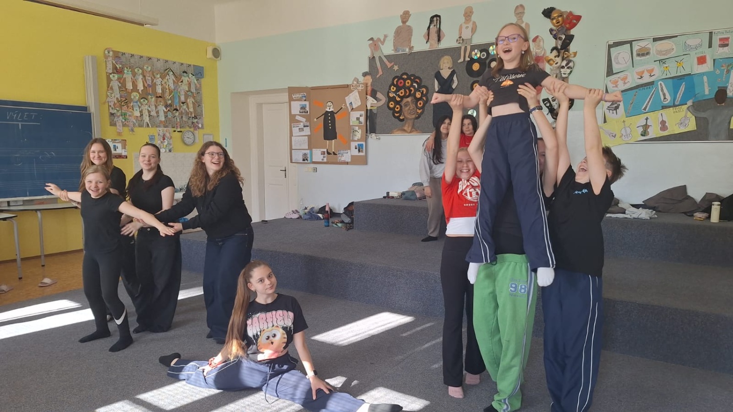 Naše taneční skupina – tvořená talentovanými dívkami a naším nepřehlédnutelným tanečníkem – má za sebou intenzivní dvoudenní taneční blok. Protančili jsme se skrz nové choreografie a ukázali, že tanec je o týmové souhře a radosti z pohybu. Všichni pracovali na různorodých tanečních číslech – od sólových vystoupení přes dvojičky až po větší skupinové choreografie. Velkou předností celé přípravy byla nejen chuť tancovat, ale také odvaha tvořit a přicházet s vlastními nápady. Mnohé tanečnice se zapojily do tvorby vlastních choreografií a samy si vybíraly hudbu, což všem tanečním číslům dodalo osobitost a originalitu. Celá taneční průprava byla nejen o pilování kroků a techniky, ale především o nadšení z pohybu, kreativitě a společném tvoření. Výsledkem je pestrý a nápaditý program. Mgr. Śárka Dáňová