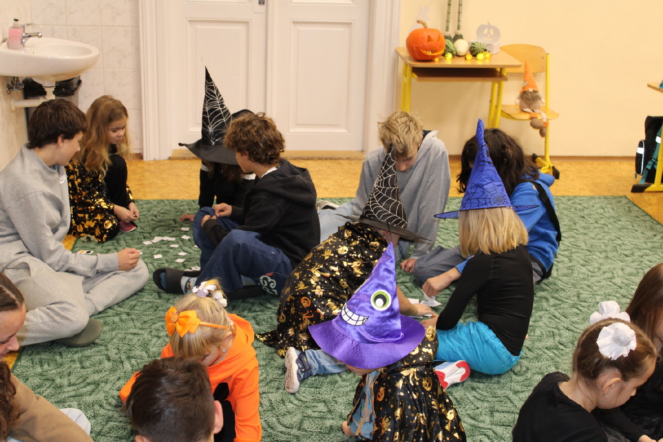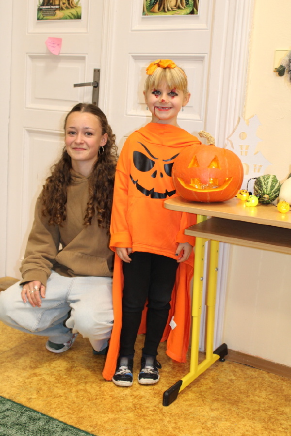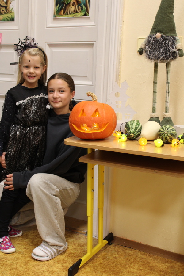 V pátek 31. října ožila naše škola v duchu Halloweenu. Prvňáčci a osmáci se setkali, aby si užili čas společného tvoření, her a strašidelné zábavy. Prvňáčci přivítali své starší kamarády ve skvěle vyzdobené třídě, kde nechyběly pavučiny, dýně a další strašidelné dekorace. Děti měly připravené úžasné kostýmy, které vykouzlily tu pravou halloweenskou atmosféru. Osmáci výzdobu jejich třídy skvěle doplnili velkou vydlabanou dýní se světýlky. Společně strávili první vyučovací hodinu, během které si povídali, vyráběli menší dekorace a hráli zábavné hry, byly to opravdu chvíle pohody a radosti. Poté se osmáci vrátili do svých tříd a u prvňáčků pokračovalo halloweenské tvoření, při němž vznikaly krásné výrobky plné fantazie a barev. Už teď se všichni těšíme na další setkání. Mgr. Šárka Dáňová, Mgr. Jana Němečková Růžičková