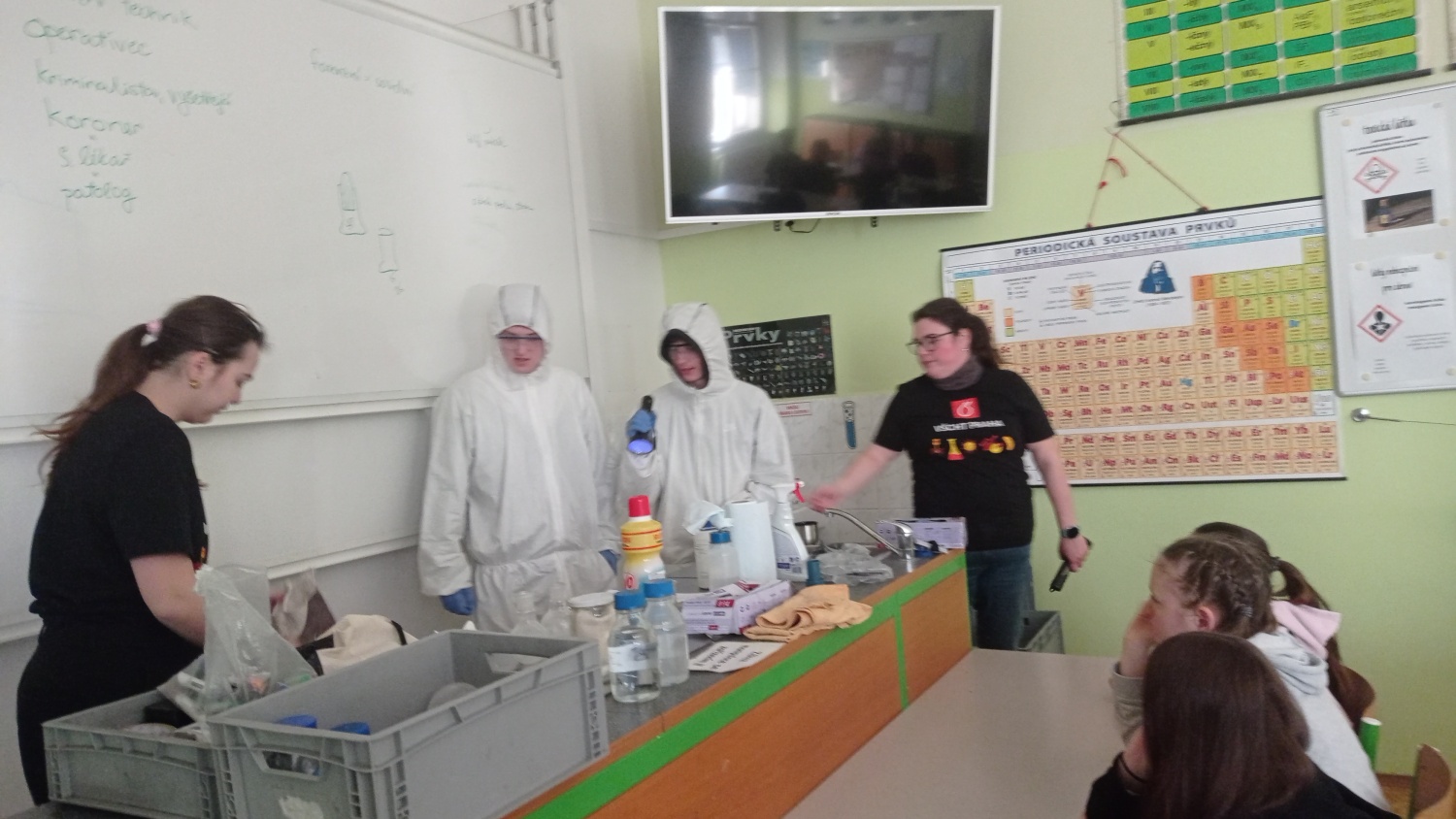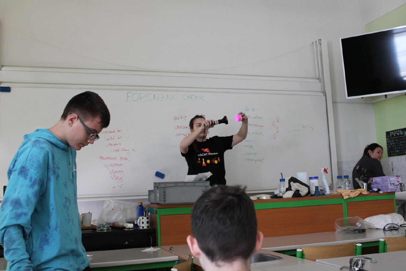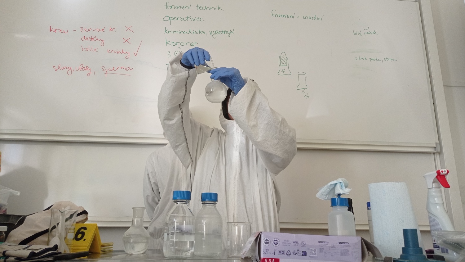 V pátek 6. března proběhla v IX. A a IX. B hodina moderní chemie na téma forenzní analýza. V úvodní části jsme si vysvětlili, co je forenzní analýza, jakou roli má operativec a vyšetřovatel a jak správně postupovat při vyšetřování. Dva žáci - operativci si tento postup prakticky vyzkoušeli. Zároveň jsme vyvrátili několik mýtů a nepravdivých postupů, které se objevují v detektivních seriálech. Na závěr jsme si vyzkoušeli techniku odebírání otisků prstů. Hodiny moderní chemie jsou popularizačním projektem VŠCHT Praha a jejich cílem je zábavnou formou - pokusy a dialogy - představit žákům na ZŠ a SŠ chemii v každodenním životě.