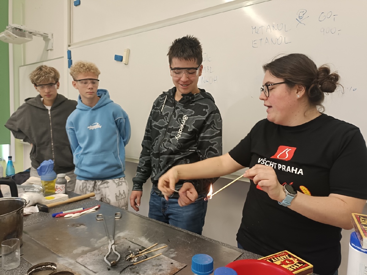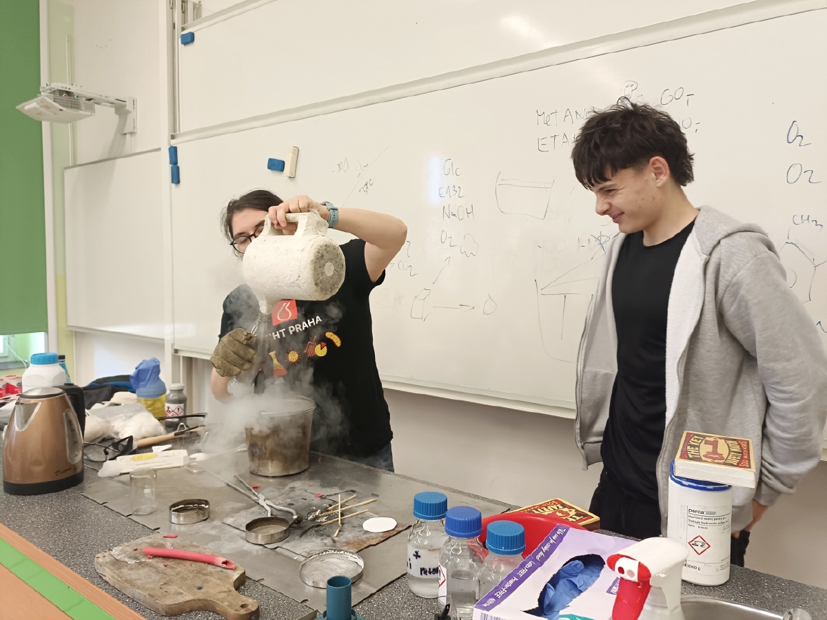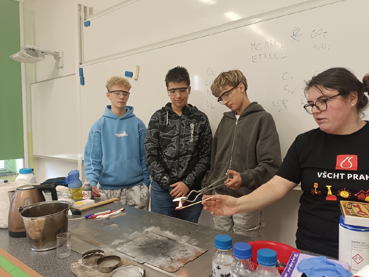 Ve čtvrtek 27. listopadu proběhly u nejstarších studentů hodiny moderní chemie a forenzní vědy. Osmákům a deváťákům přinesly pořádnou dávku objevování a experimentů. Osmáci si vyzkoušeli efektní pokusy se suchým a kapalným dusíkem, se střelným prachem a porovnali hořlavost celulózy a nitrocelulózy. Deváťáci se naopak ponořili do světa forenzní analýzy – naučili se roli operativce a vyšetřovatele, vyvrátili mýty z detektivních seriálů a prakticky si vyzkoušeli odebírání otisků prstů. Hodiny byly plná překvapení a inspirace pro mladé chemiky a detektivy. Ing. Šárka Nováková