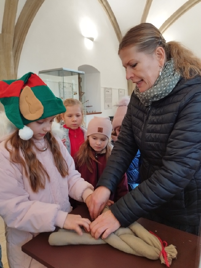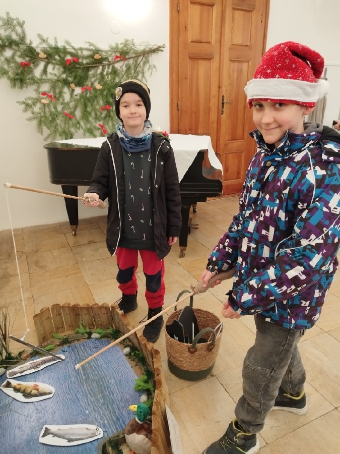 V pátek 12.prosince byly děti ze II.B jako každý rok na vánoční výstavě na Hrádku. Tentokrát si mohly vyzkoušet jak se plete vánočka ze šesti a z osmi dílů těsta, složit puzzle vepříka, očichat vánoční koření a zkusit chytit kapra. A ještě k tomu si nakonec vyrobily krásného andílka z drátku a korálků, který jim ji rodičům udělá radost na vánočním stromečku. Mgr. Růžena Votrubová
