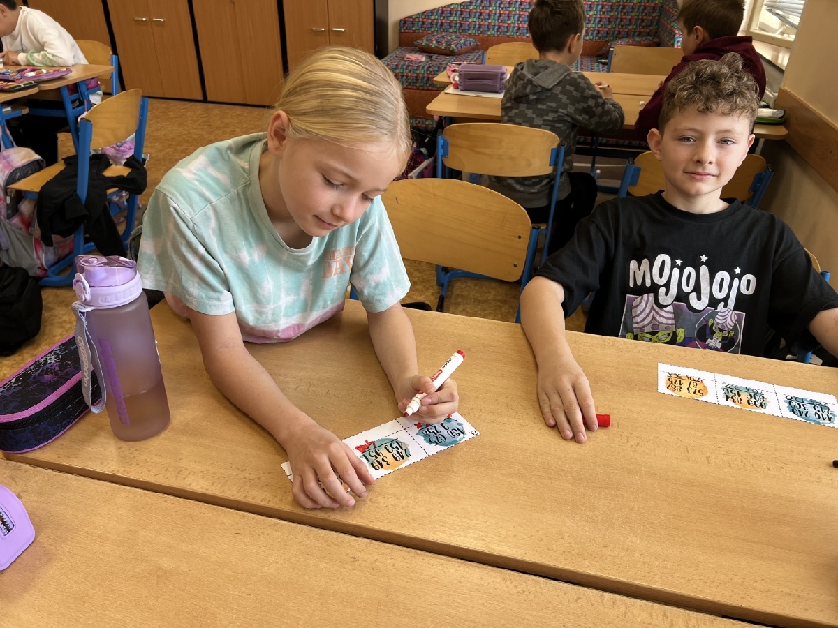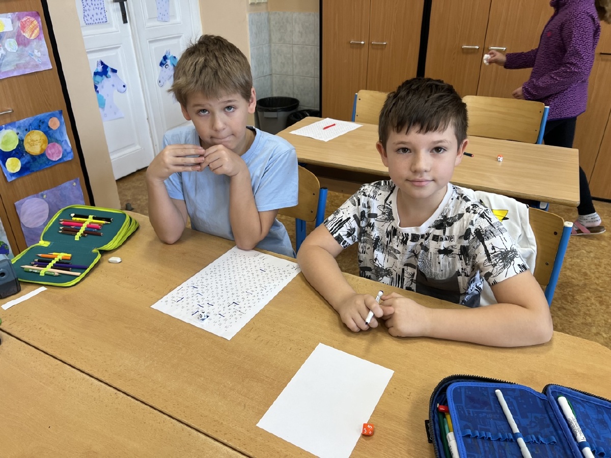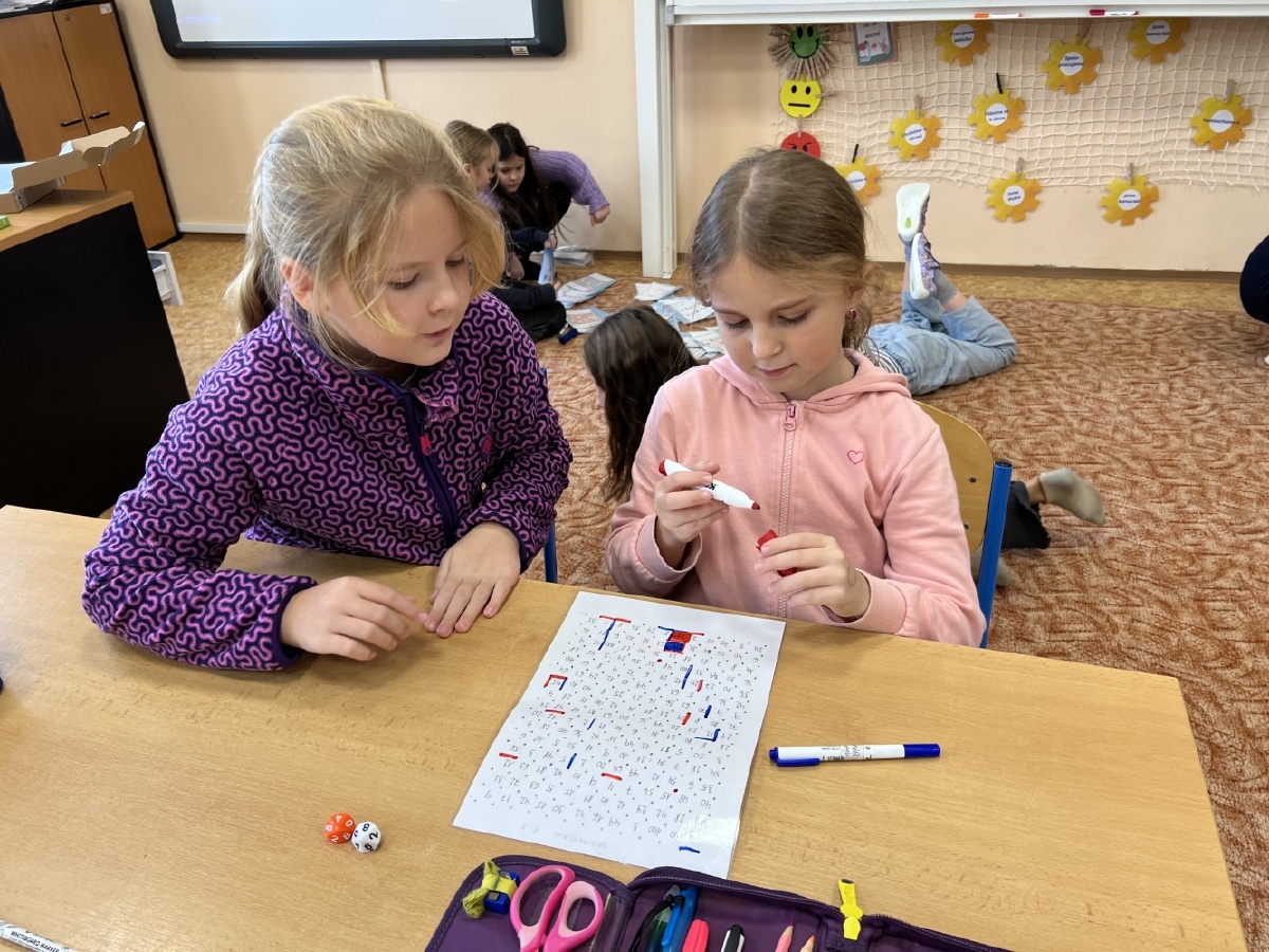 Ve čtvrtek 13. listopadu hodina matematiky ve IV. C proběhla ve znamení zábavy, soutěžení, a hlavně hravého učení. Místo klasických sešitů a tabulek se třída proměnila v hrací arénu, kde si žáci ověřili své matematické dovednosti netradičním způsobem. Co jsme trénovali? Násobilku jsme si pomocí desetistěnných kostek procvičili dokonale, a ještě bojovali o získané území. Geometrii jsme si zopakovali pomocí přiřazování kartiček a hlava nám jela na plné obrátky při řešení obrázkových rovnic a logických hlavolamů, které vyžadovaly nejen rychlou mysl, ale i strategické myšlení a spolupráci. Pořadí početních operací s přirozenými čísly jsme si propojili s geometrií. Kdo chtěl věnoval se počítání s velkými čísly. Cílem hodiny bylo ukázat, že matematika není jen o drilování. Vidět, jak jsou děti nadšené a motivované, je pak nejlepší zpětná vazba. Mgr. Irena Skaláková