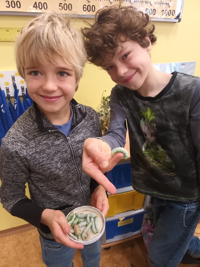 „Dobrý den, paní učitelko, chtěla byste housenky?“ Takovou neobvyklou, ale velmi lákavou nabídku obdržela třídní učitelka IV. B. Jedna z maminek totiž nabídla třídě housenky martináče pajasanového, aby děti mohly na vlastní oči sledovat jednotlivá stádia vývoje tohoto krásného motýla. Spolu s housenkami dostala třída také větvičky s listy, kterými se housenky vydatně živily, a návod k jejich péči. Čtvrťáci se o své nové „spolužáky“ vzorně starali – pravidelně jim rosili dočasný domov, velkou sklenici, a nezapomínali ani na úklid. Brzy přišel další napínavý okamžik: první housenka se zakuklila. Děti kuklu opatrně zavěsily na šňůru pomocí kolíčku a netrpělivě čekaly na další. Během několika dnů se dočkaly – na šňůře nakonec viselo čtrnáct kukel. Poté následovalo několik týdnů očekávání, až se z kukel vylíhnou motýli. A čekání stálo za to! Čtvrťáci si mohli prohlédnout i vyfotografovat nádherné martináče. Samičky dokonce nakladly vajíčka – a kdyby je samečci oplodnili, mohl by celý příběh s housenkami začít znovu. Mgr. Markéta Štifterová