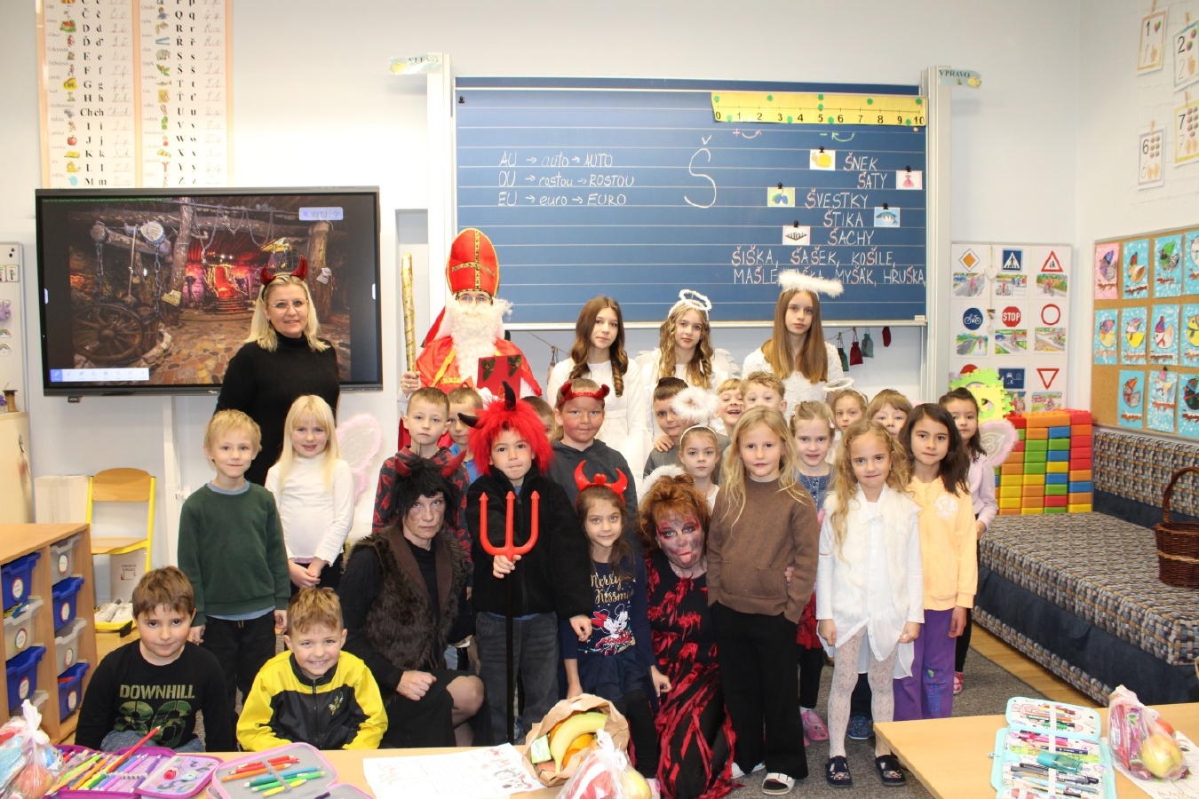Prosinec byl pro prvňáčky z céčka především ve znamení návštěvy různých vánočních akcí, besídek a vystoupení a co se výuky týče - tak seznámení, poznávání a čtení malých tiskacích písmen. Žáci si užívali hodin tělesné výchovy s trenérem Bédou. Při hodinách hudební výchovy si s chutí společně zazpívali vánoční koledy a písničky. Nácvik z hodin pak využili i při návštěvě školní besídky a třídních vystoupení II. D a III. A, kde si neváhali s ostatními zazpívat. O Vánocích a vánočních zvycích se mnohé dozvěděli v knihovně a na Hrádku, kde byli na výstavě Vánoce na talíři a při té příležitosti si vytvořili krásné korálkové hvězdičky. Do třídy také zavítal Mikuláš se svou družinou čertů a andělů. Děti s radostí dodržovaly i většinu "speciálních dní" ze školního adventního kalendáře. V posledním týdnu se ještě stihly potkat se svými patrony ze VII. C. Na poslední školní den roku 2025 se děti moc těšily. Však také měly proč. Stromeček ve třídě byl sice letos malý, ale dárečků se tam vešlo dost. Největší radost byla z třídních kšiltovek, které děti pod stromečkem našly. Mají krásnou modrou barvu a každá z nich je opatřená jménem svého nositele. Všichni se moc těší, co jim nachystá leden. Bc. Lucie Kubínová