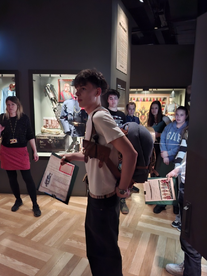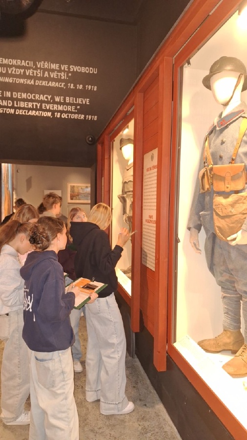 Žáci VIII. B absolvovali program Příběh Velké války. Během skupinové práce s dobovými dokumenty a exponáty z let 1914–1918 nahlédli na průběh první světové války z různých perspektiv – od legionářů a vojáků rakousko-uherské armády až po běžné obyvatele. Zkoumali, jak válečný konflikt ovlivnil osudy lidí, a pochopili význam odboje pro vznik Československa i vliv nových technologií na způsob vedení boje. Mgr. Kristýna Hurychová, Mgr. Kateřina Vyčichlová, Mgr. Šárka Dáňová