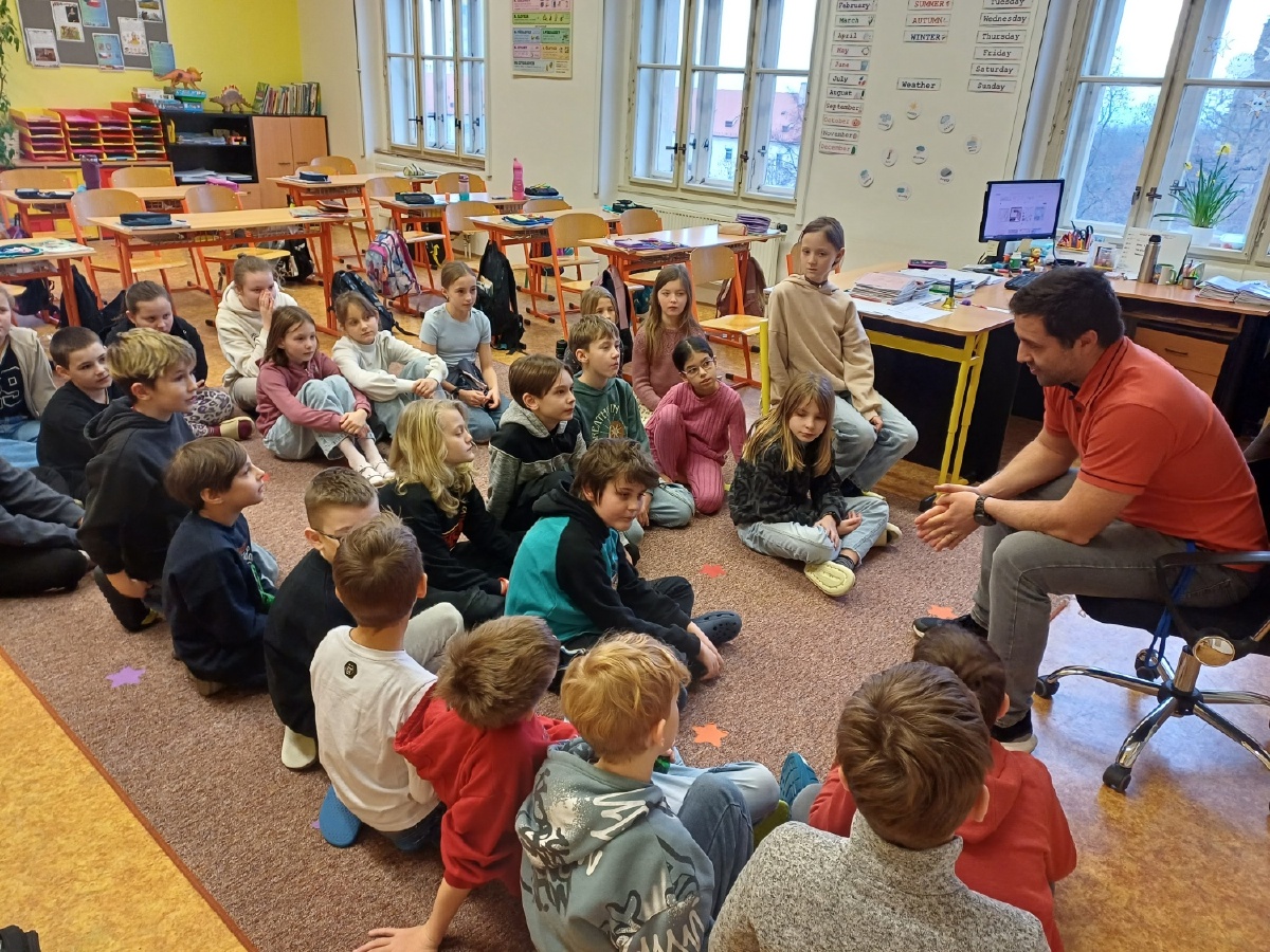 Ve třídě IV. D proběhla zajímavá a přínosná přednáška pana Milana Ptáčníka, která byla zaměřena na téma Gsportu a bezpečného chování v online prostředí. Žáci se dozvěděli, že Gsport není jen hraní počítačových her, ale že spojuje digitální hry s pohybovou aktivitou. Děti si tak uvědomily, že i při hraní her je důležité se hýbat, spolupracovat a aktivně zapojovat celé tělo, nejen sedět u obrazovky. Součástí přednášky bylo také velmi důležité téma internetu a sociálních sítí. Pan Ptáčník dětem srozumitelně vysvětlil, jaká rizika na ně mohou v online světě čekat, na co si dát pozor a proč je důležité chránit své osobní údaje. Tato témata jsou pro děti v dnešní digitální době velmi aktuální a potřebná. Přednáška byla pro děti  poučná a inspirativní a vedla je k zamyšlení nad tím, jak moderní technologie využívat smysluplně a zodpovědně. Panu Milanu Ptáčníkovi děkujeme za návštěvu, zajímavou přednášku a za čas, který nám věnoval. Mgr. Miroslava Falgeová
