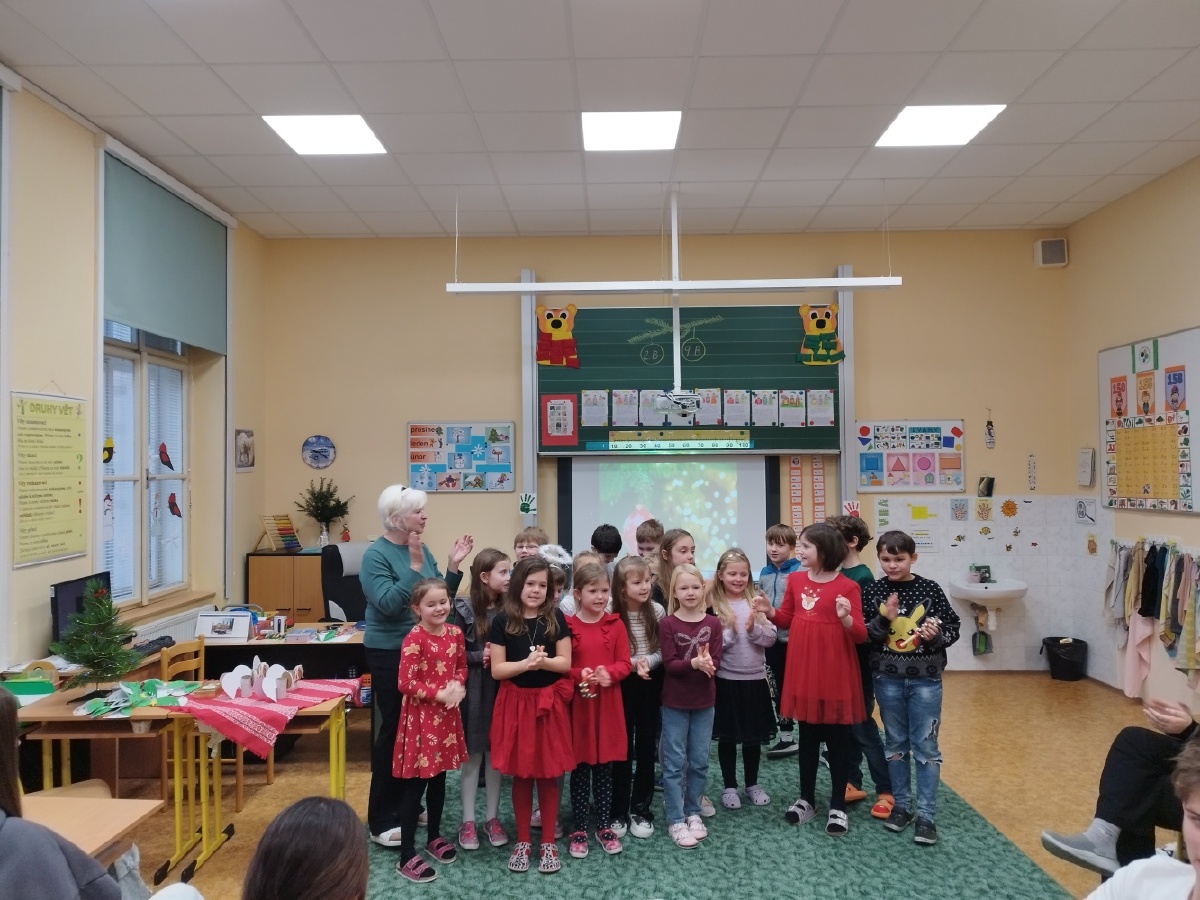 Děti ze II. B se poslední školní předvánoční den setkaly se svými patrony z IX. B. Obě třídy si připravily krásná přáníčka a druháčci předvedli pásmo plné vánočních básniček a koled, které deváťáci ocenili velkým potleskem. Popovídali si společně o Vánocích a na závěr si společně zahráli hru, kterou dostali druháčci pod stromeček. Báječně se u toho všichni bavili a společné chvíle si krásně užili. Mgr. Růžena Votrubová