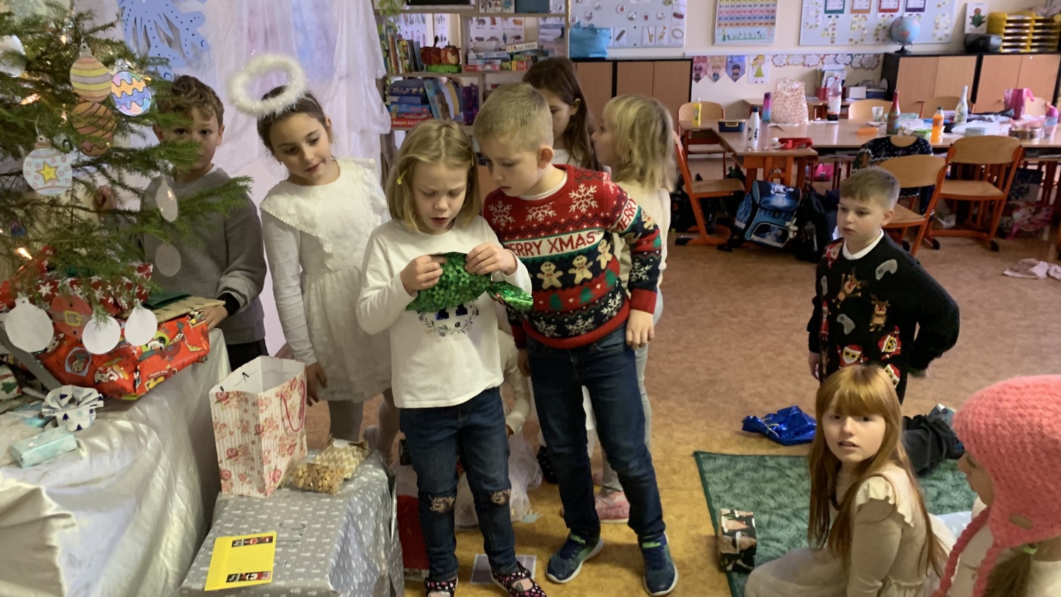 Druháčci z céčka měli v prosinci opravdu nabitý program. Navštívili městskou knihovnu, výstavu na Hrádku, kde si vyrobili anděla z korálků, také vzorně plnili každou výzvu ve školním adventním kalendáři - vyráběli společné přání, hráli piškvorkové turnaje, stali se na chvíli pány učiteli nebo hráli staré dobré (nejen) deskové hry….Vrcholem byla třídní besídka, kterou si pečlivě secvičili a zahráli rodičům, spolužákům i svým patronům z IX.C. Pozvali i paní ředitelku a dostali velikou pochvalu - hráli a zpívali krásně, nám dospělým, ukáply i slzy dojetí. Bohatou nadílku si opravdu všichni zasloužili. Mgr. Jaroslava Šibravová