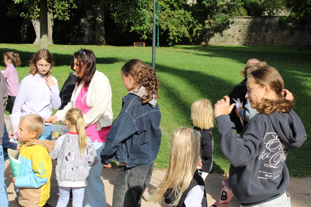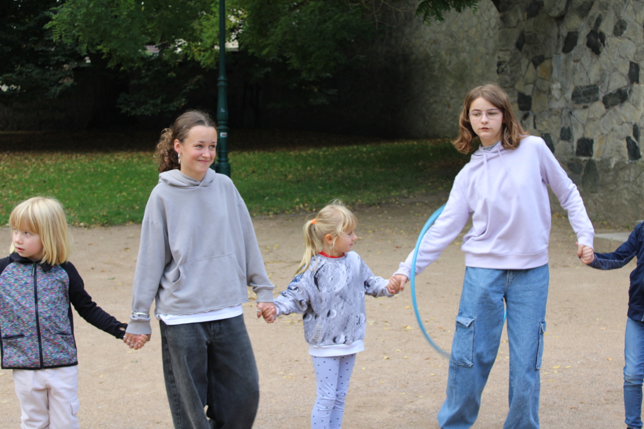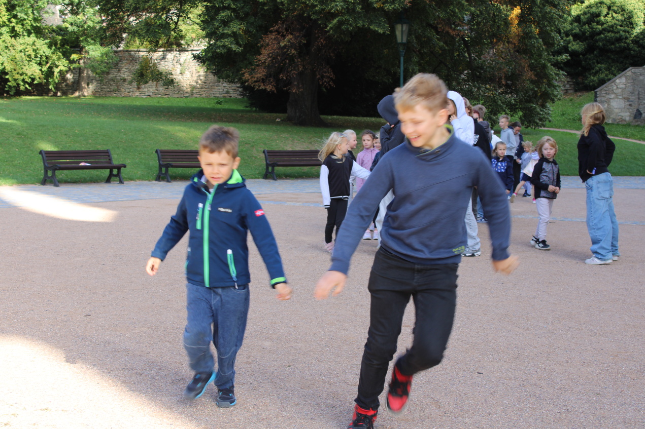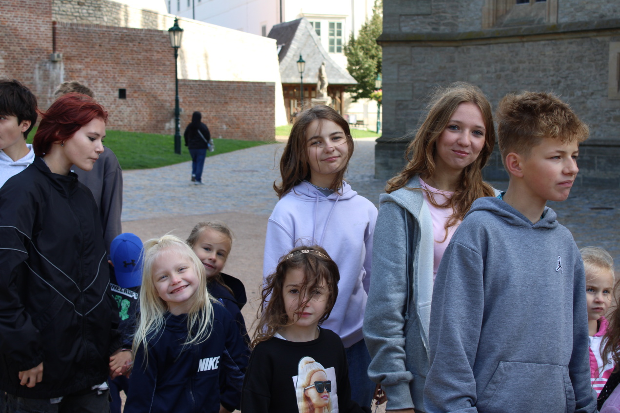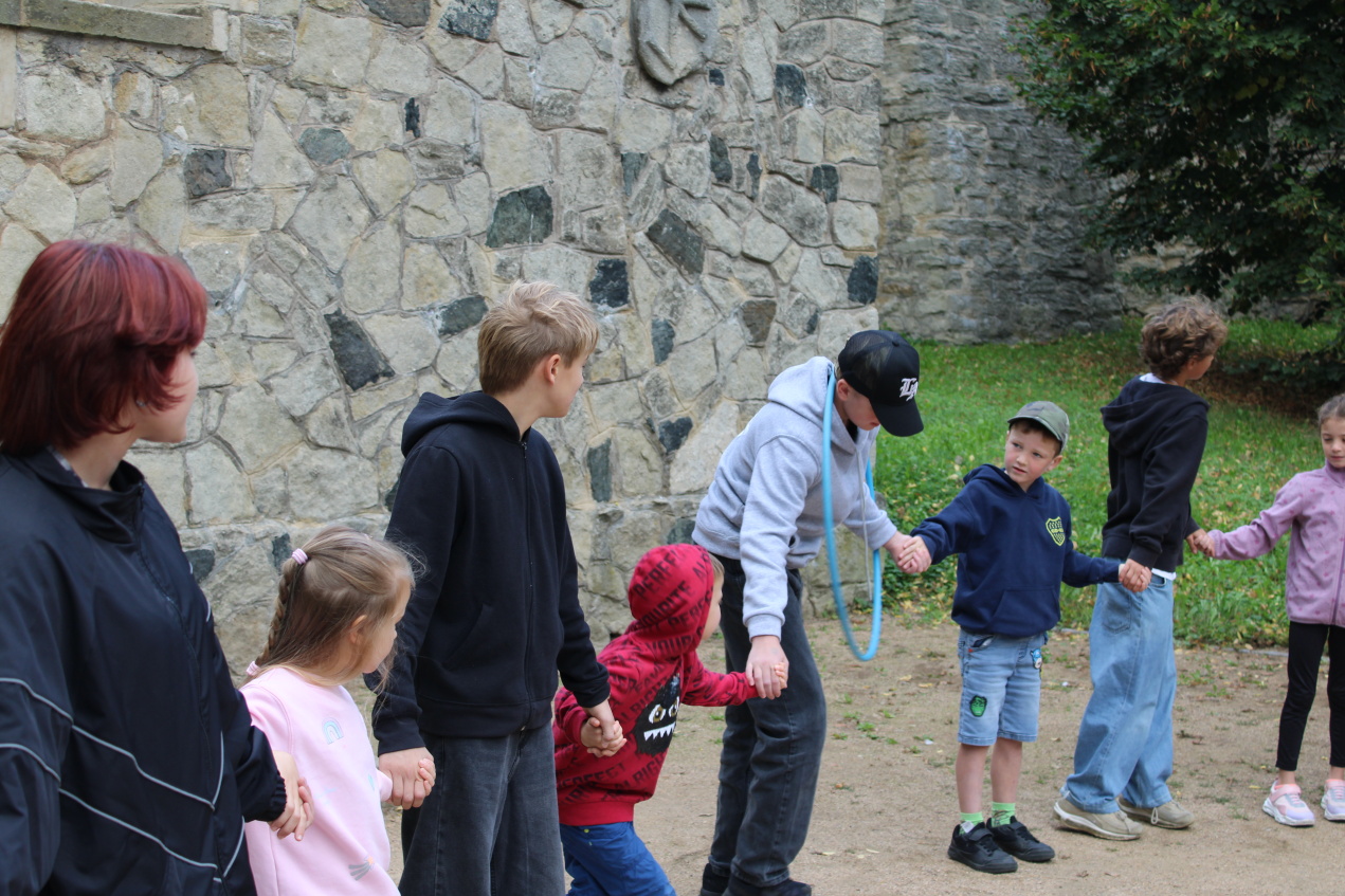 Ve středu 17. září zažili žáci VIII. A a I. A výjimečné dopoledne plné her, smíchu a radosti. Úžasnou kulisu pro společné setkání vytvořilo nejenom krásné prostředí u chrámu svaté Barbory, ale i sem tam slunečné počasí. Osmáci si pro své mladší spolužáky připravili pestrý program plný soutěží a zábavných úkolů – nechyběl hod na cíl, florbalový slalom, poznávačky, hádanky ani rýžování zlata. Každé stanoviště bylo promyšlené, nápadité a přizpůsobené věku prvňáčků. Nejenže si děti skvěle zasoutěžily, ale odnesly si i drobné odměny a hlavně spoustu zážitků. Velké poděkování patří osmákům nejen za přípravu a organizaci celé akce, ale především za jejich skvělý přístup, ochotu, trpělivost a laskavost, se kterou se malým kamarádům věnovali. Po hrách následovalo společné focení a loučení. Tak zase příště. Ahoj! Mgr. Šárka Dáňová, Mgr. Jana Němečková Růžičková